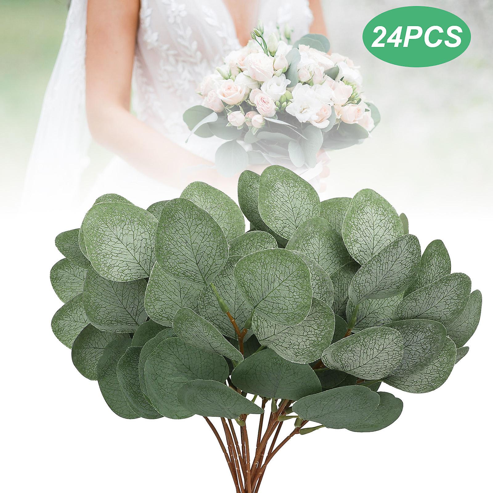 24PCS Artificial Eucalyptus Leaves Stems Garland Wreath Wedding Plant Home Decor