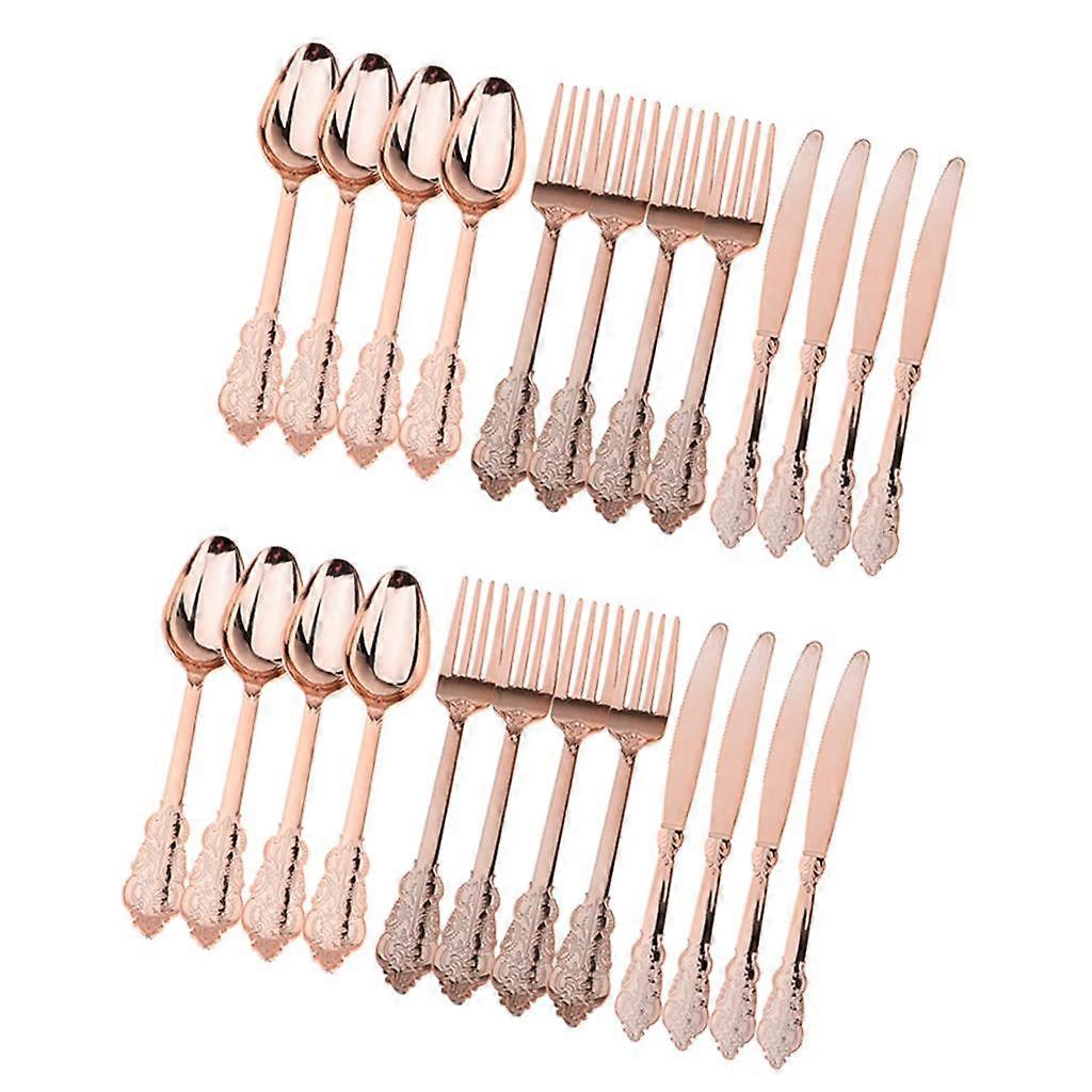 24pcs Disposable Plastic Cutlery Set Wedding Tableware Supply Rose Gold