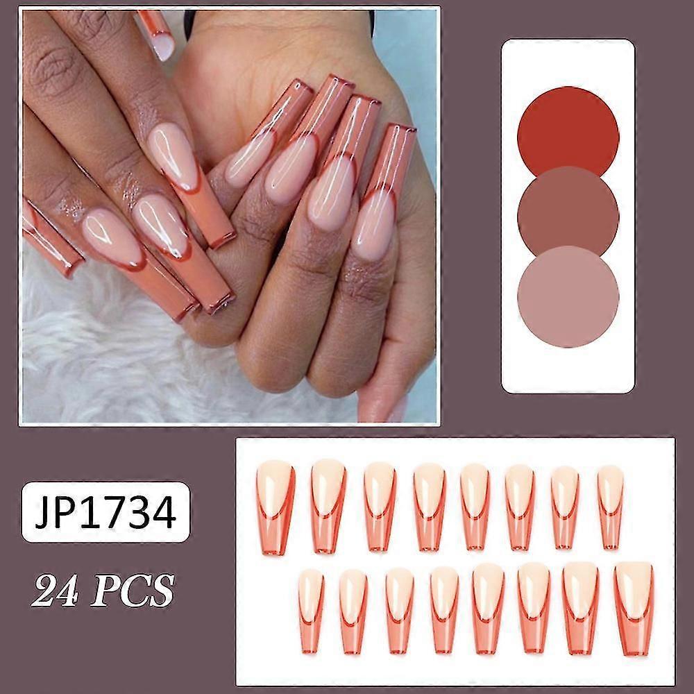 24pcs Glossy False Nails French Orange Edge Simple Fake Nails Jelly Glue Model