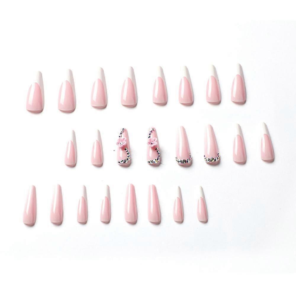24pcs Women Ballerina Press On Nail Semi-transparent Nail Manicure Set Natural Wear Glue Models