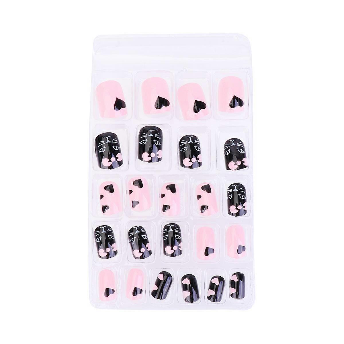 24pcs Children False Nails Kit Lovely Full Cover Fake Nail Tips Gift for Kids Little Girls (C21)