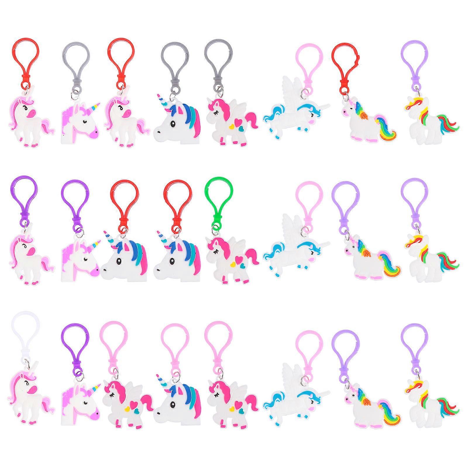 24PCS Cartoon Unicorn Key Ring PVC Rainbow Pendant Lightweight Keychain for Car Bag Backpack Decoration Party Favor