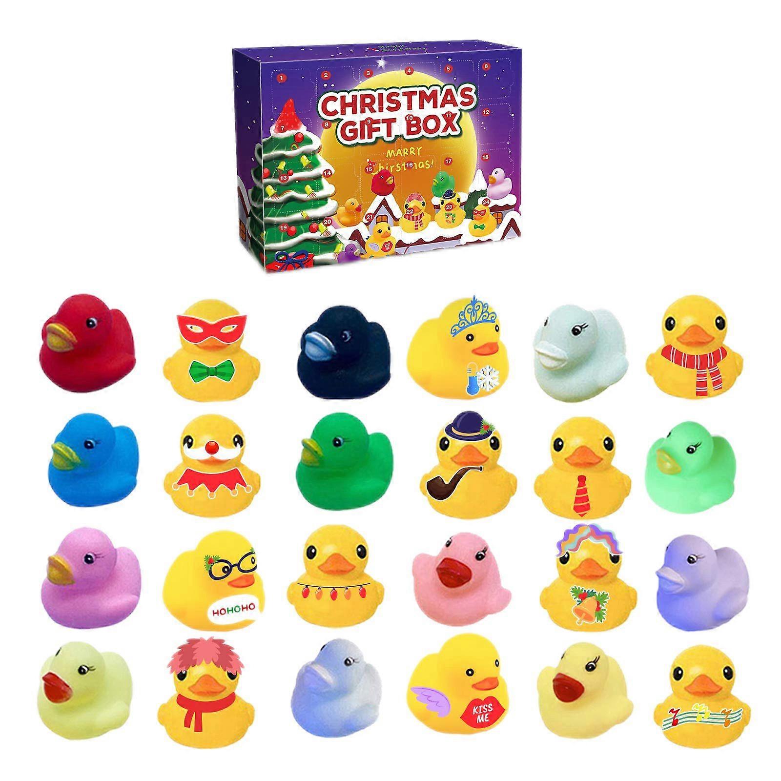Feature:1. Perfect Christmas Gift: The Advent Calender as a gift for yourself or you loved which can let you to looking forward to open a door each day, it also means that Christmas is coming, which is full of nervous and joy.2. 24 Days Countdown: Record 24 days in digital form, each date corresponds to a door. You can follow the door to open and take out the cute rubber duck. Each door can be opened and closed.3. Safety Material: Made of rubber, durable, smooth. All the products have been tested and are safe for use. Keeping your lovely kid's safe and happy is always our pursuit.4. Get An Unknown Surprise Every Day: With Christmas just around the corner, kids can get a little surprise every day from the Children's Advent Calendar, counting down to Christmas. Fun kids gifts for fun family time before Christmas!5. Beautiful Christmas Gift Box: The beautiful gift box is easy to catch the eye of children and is the perfect holiday gift to add to the Christmas atmosphere.Specification:Model Number: Calendar Blind BoxPattern: Cartoon animalOccasion: Party,Christmas,New YearName: Christmas Rubber Duck Advent CalendarMaterial: RubberColor: As PictureProduct size: About 310x226x50mm/12.2x8.91x1.97inNet weight: 150gGross weight: 200gNote:Due to the different monitor and light effect, the actual color of the item might be slightly different from the color showed on the pictures. Thank you!Please allow 1-2cm measuring deviation due to manual measurement. 24pcs/box x Christmas Advent Calendar