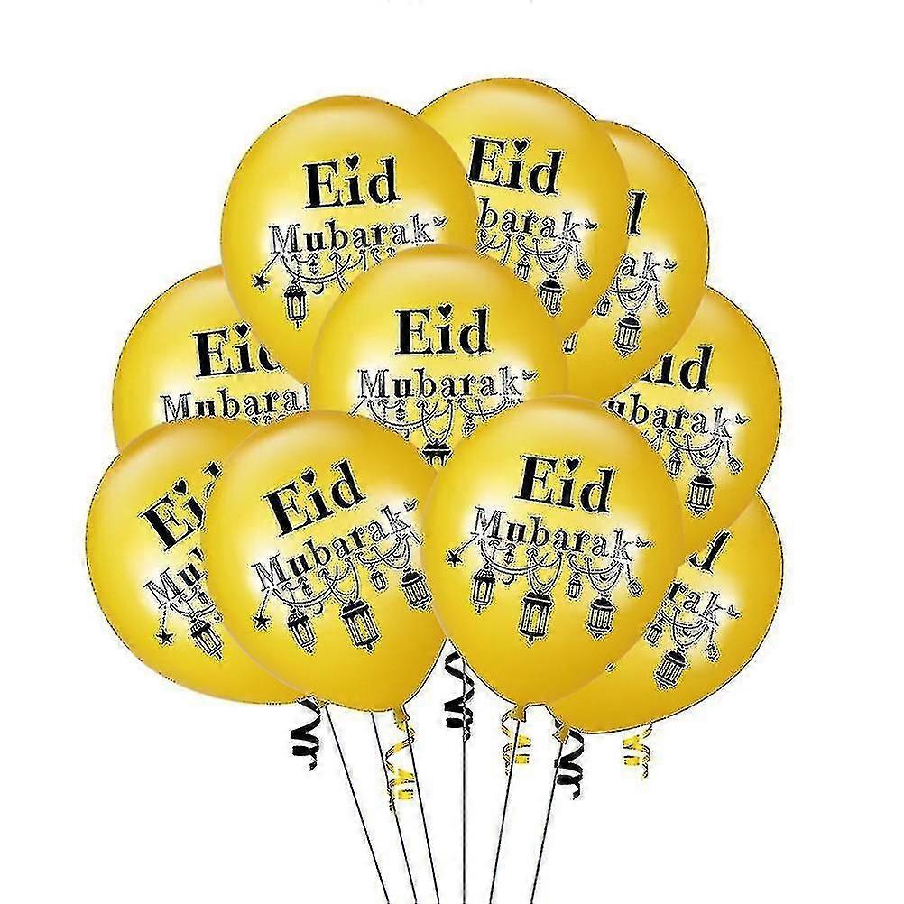 24pcs 12 Inches Creative Balloons Beautiful Printed Latex Balloons Creative Party Decor For Eid Mubarak (golden, Without Ribbon)