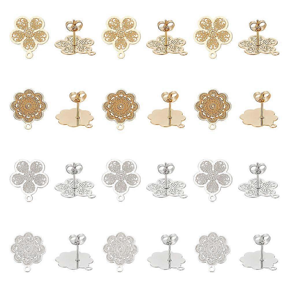24pcs 2 Styles Flower Post Stud Earrings 2 Colors Hypoallergenic Stud Earrings with Loop Metal Earring for Jewelry Making17.5~18x15~15.5mm