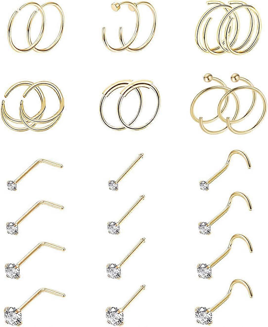24PCS 22G 316L Stainless Steel Nose Rings Hoop for Women Men Nose Studs CZ