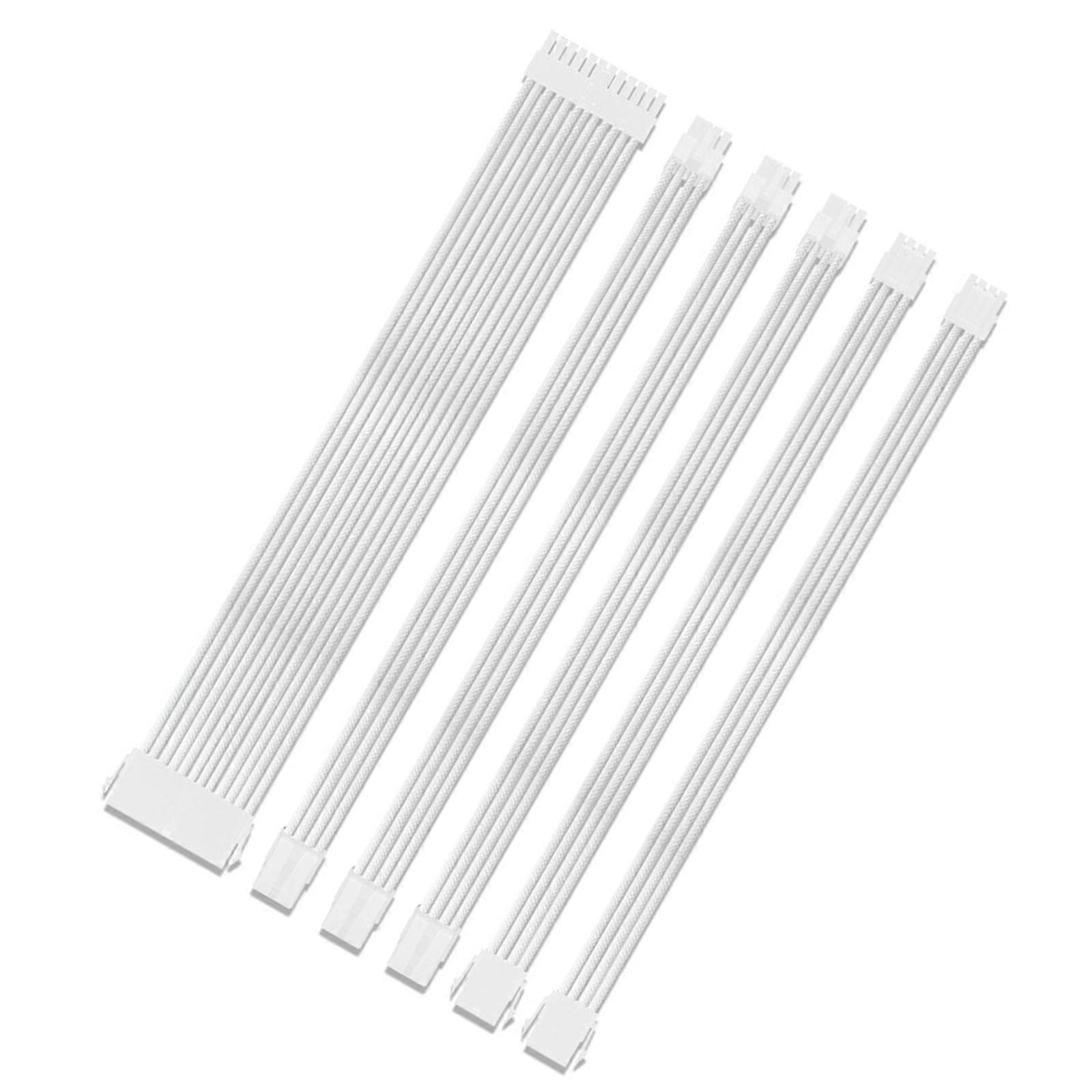 24PIN Mainboard and GPU 6+2Pin PCIE CPU 8PIN Colorful Module Cable Computer 18AWG Power Supply Extension Cable Set 6PCS White