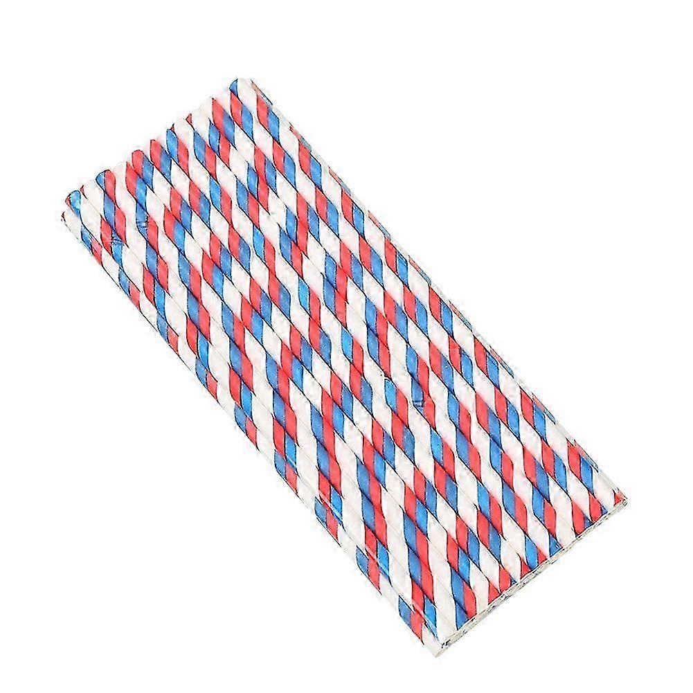 25 Stick Disposable Paper Straws Party Dessert Juice Decoration Environmental Straw(Blue Red)