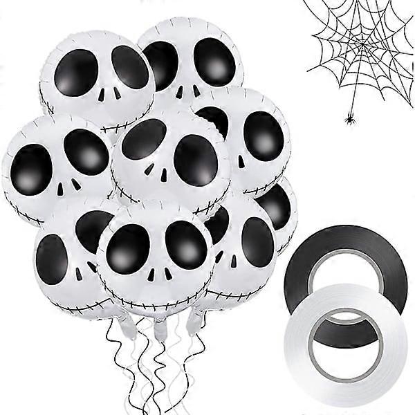 25 Halloween skull foil balloons with 2 ribbon rolls 18"