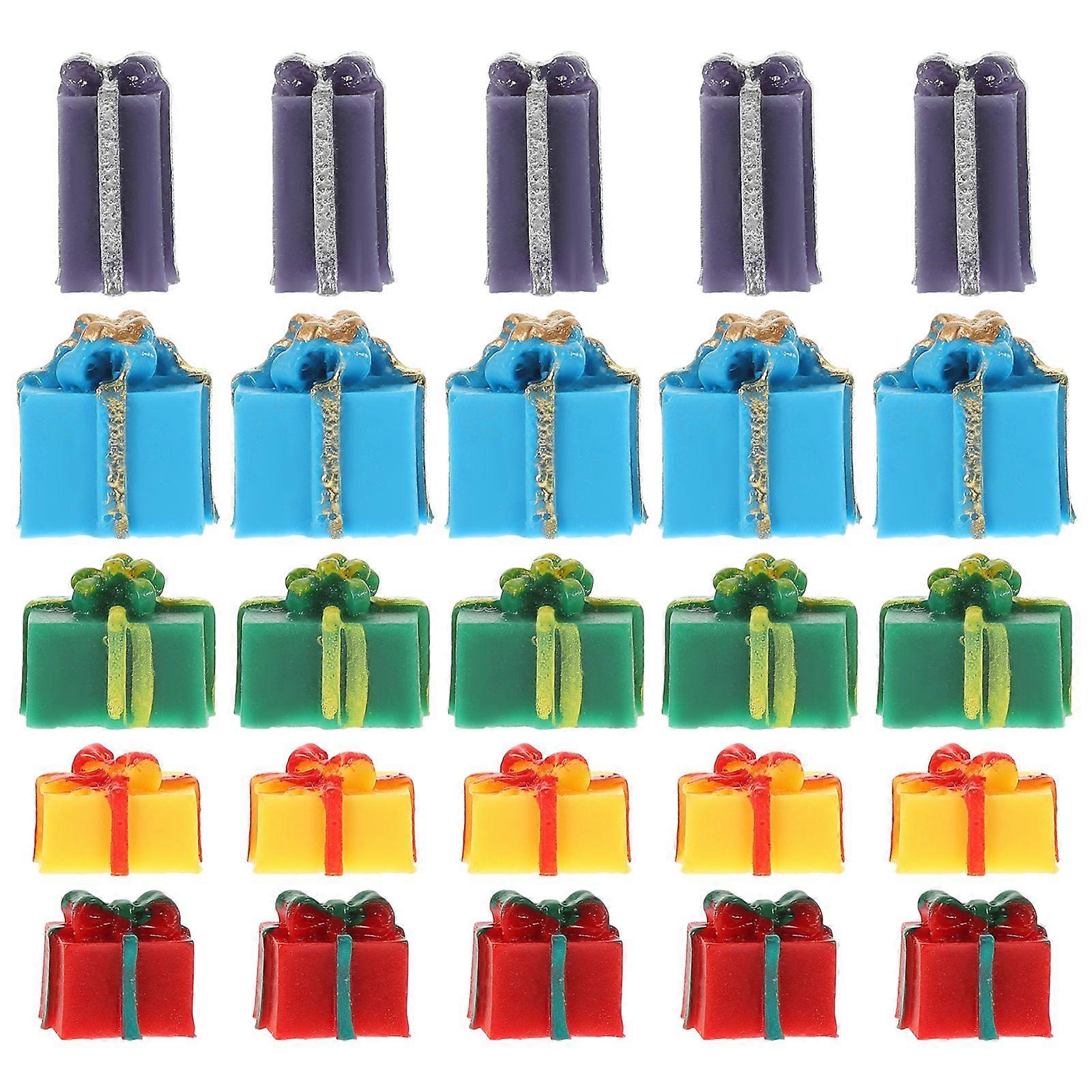 25pcs Christmas Mini Boxes Ornament Christmas Miniature Ornaments Doll House Resin Gifts Boxes