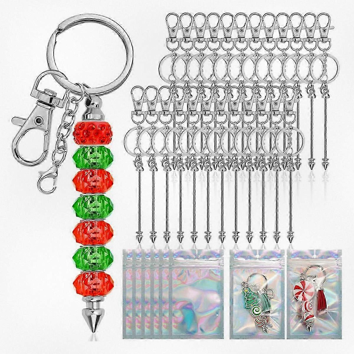 25-Piece Beadable Keychain Bar Set, Silver Beaded Keychain with Resealable Gift Bag for DIY Crafting, Pendant Keychain Supplies
