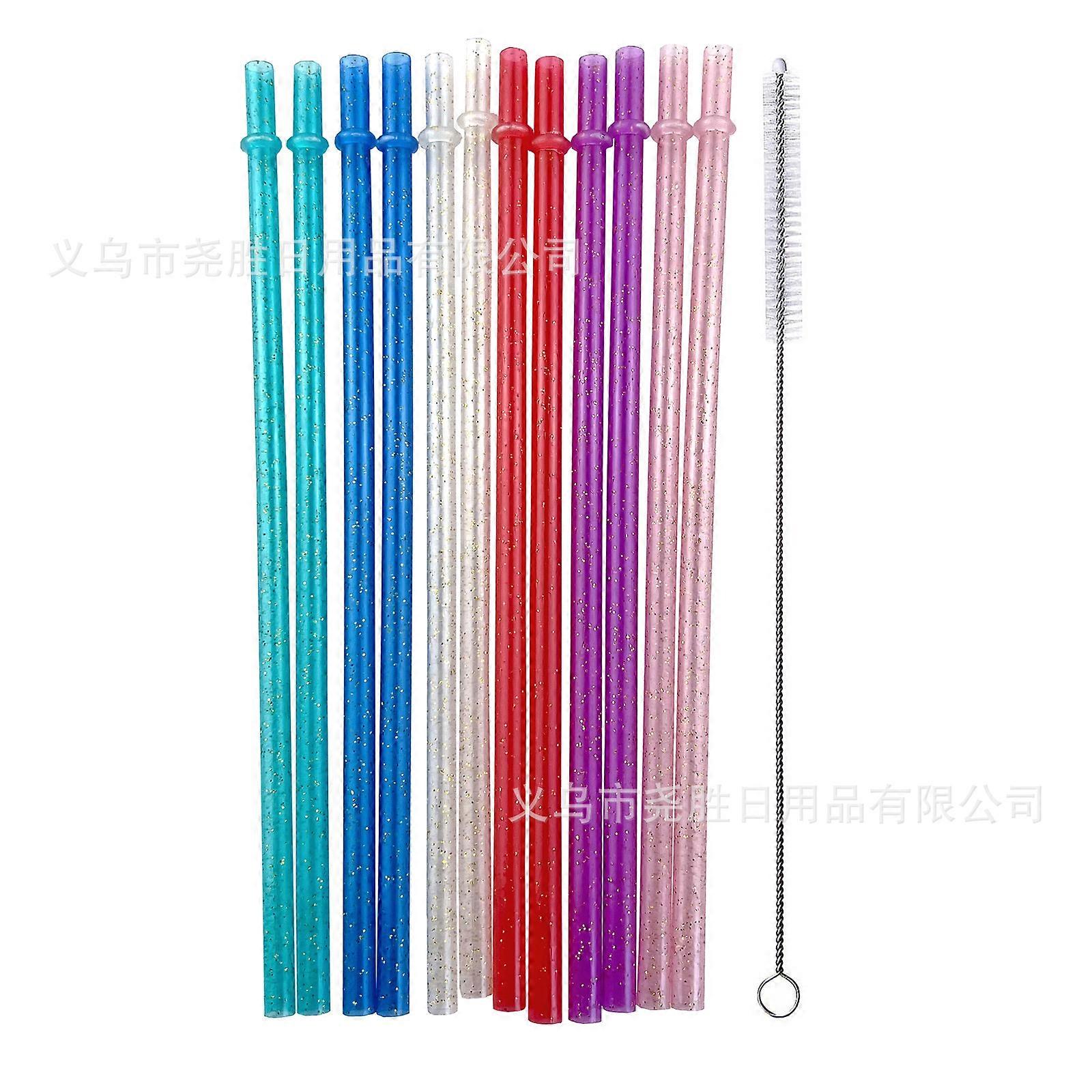 25 pcs Reusable Straws Long Straws Drinks Straws Glitter Straw for Juice with Cleaning Brush