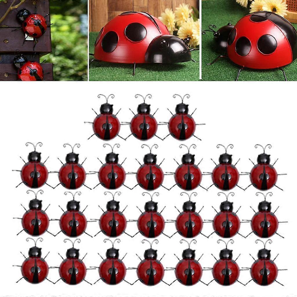 25Pcs Ladybird Wall Hanging Lady Bug Metal Decor For Garden Wall Hanger 10cm