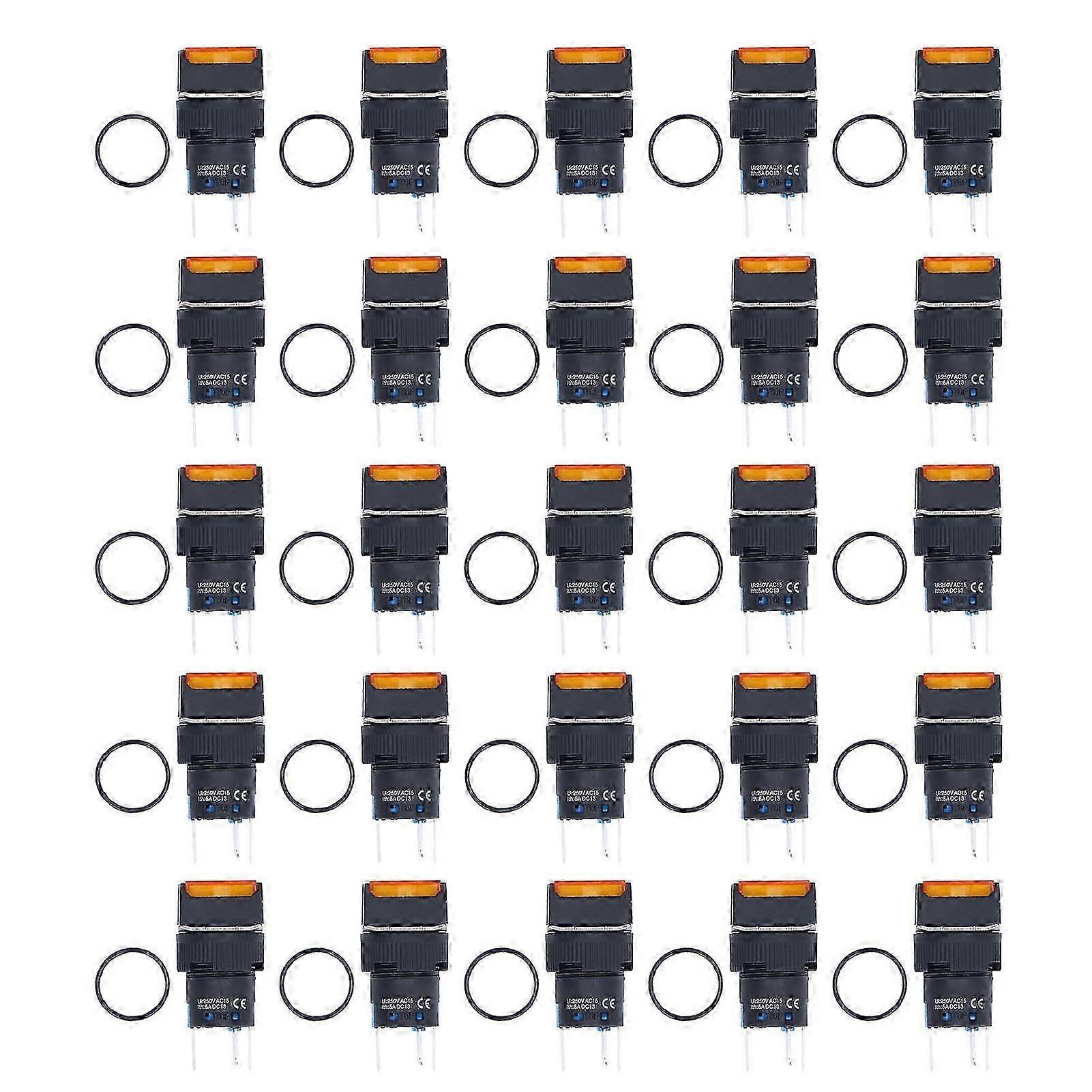 25Pcs Momentary Self Locking 16mm Square Push Button Switch Light Set Kit 12V Yellow