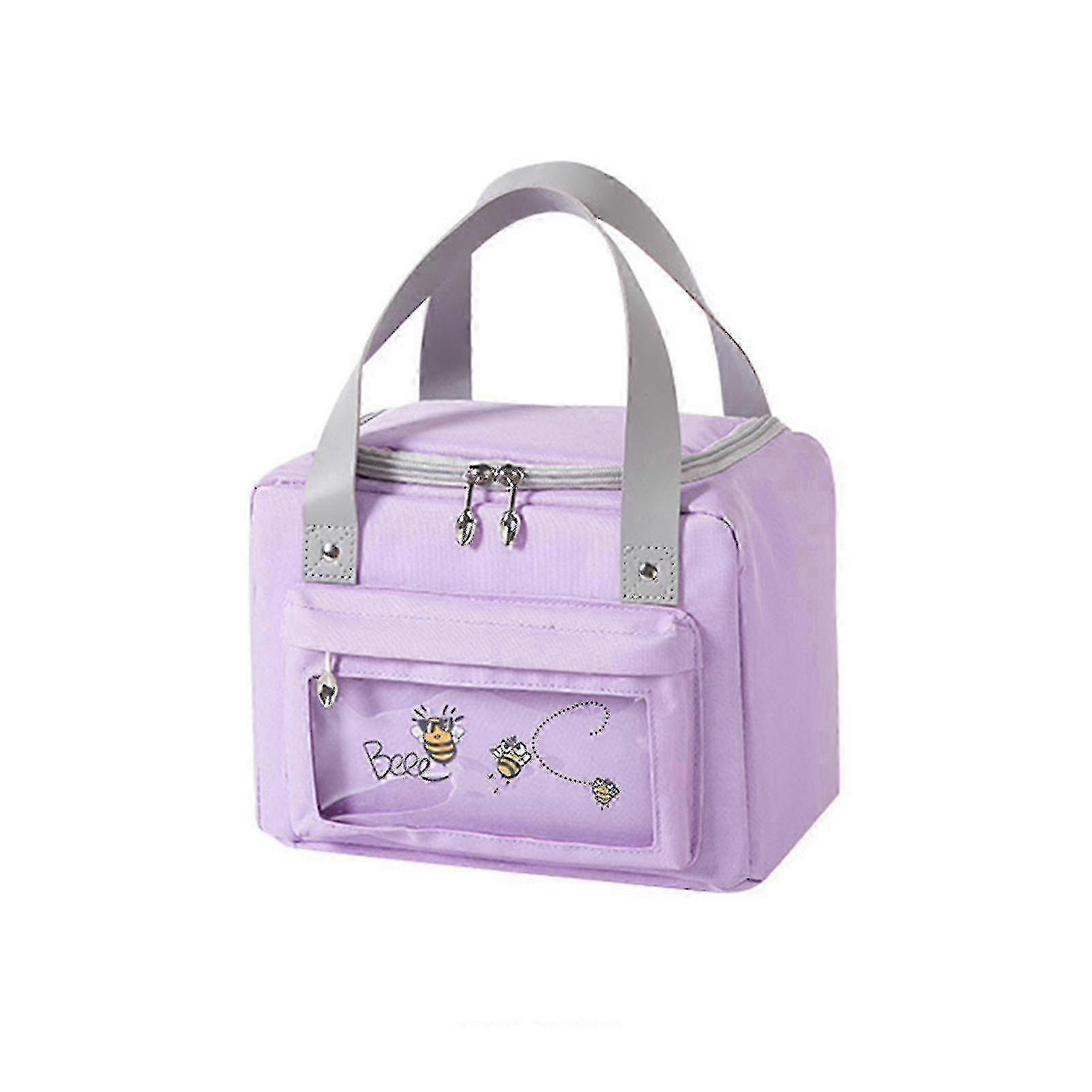 25-26 Thicker Square Shape Lunch Box Bag With Small Front Pocket For Work Or School_h(color:purple Bee)