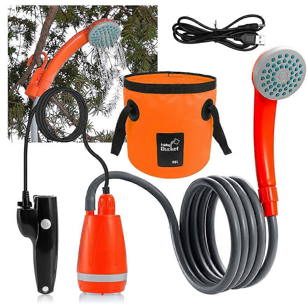 Outdoor Portable Camping Shower Kit with 2.5-3.5L/min Water Discharge 2m Hose USB Charging 30-60min