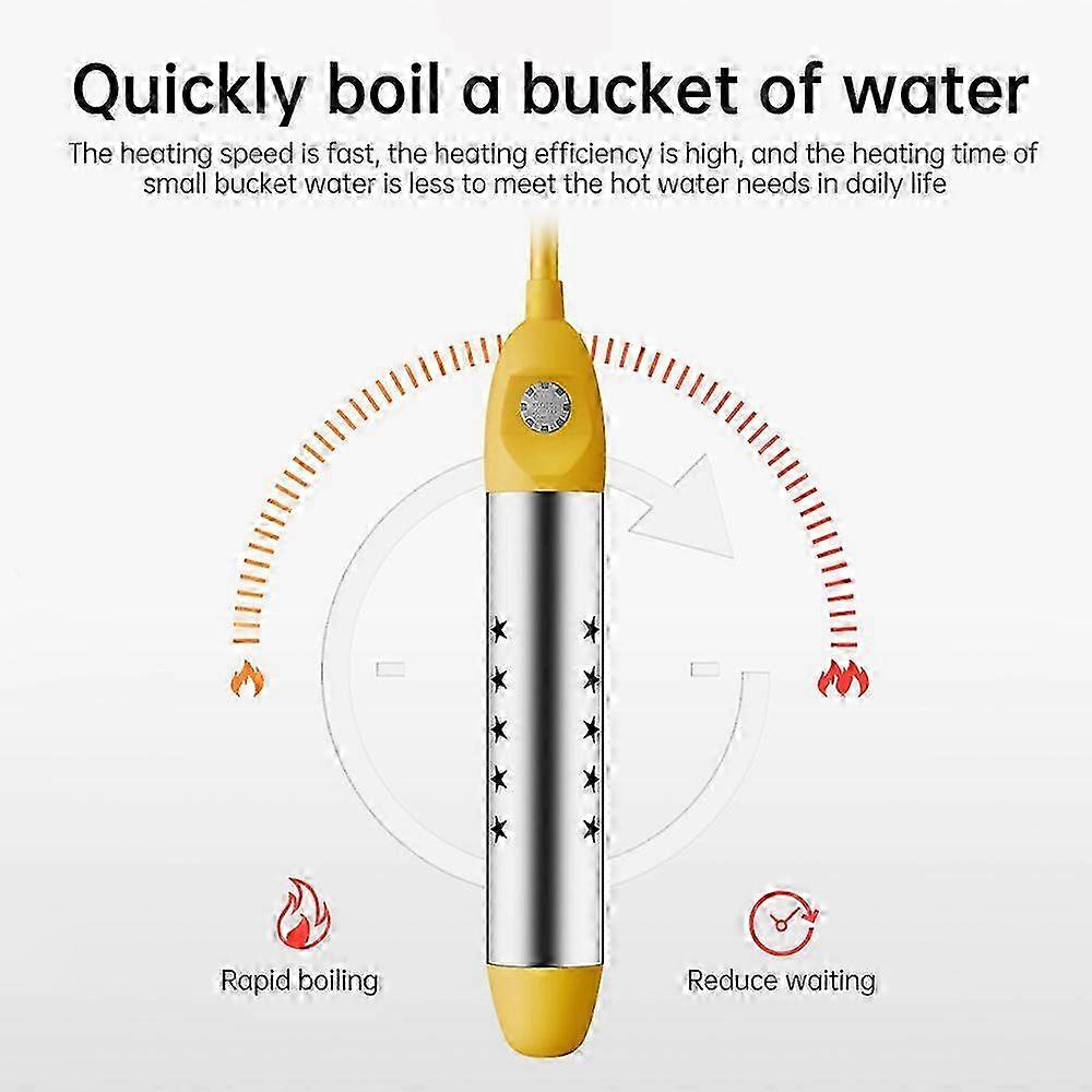 Feature:1. ImportantPlease carefully read the note and manual before use for safety.2. Fast Heating: 2500W strong power electric water heater with 25cm or 9.8in large heating tube, improve 30 percent efficiency to ensure heats evenly and quickly. Heat dissipates to the water faster by flowing through the holes in the guard.3. Auto Off: Our immersion water heaters are designed with intelligent temperature control and automatically cut off the power when the water temperature reaches 75 or 165anddeg F.4. Safety Protection: Instant water heater with high-quality stainless steel protective cover, effectively prevent heating elements from direct contact with humans or animals. Safe, no leakage, corrosion-resistant and anti-aging.5. Easy To Use: Take electric submersible water heater immerse in water at proper level, plug into any grounded outlet. Power indicator light shows the working status easy for control.6. Wide Applicable: Our portable pool heater suitable for different kinds of portable bathtub, mini pool, sink, bucket, washbasin which can hold hot water. Lightweight and portable for travels and outdoors.Specification:Specifications:Main Material: Stainless Steel and PPPlug Type: EU plug or UK plug or AU plug(optional)Voltage: 220V(EU plug or AU plug) or 110V(US plug)Automatic shut-off temperature: 75 or 165anddeg FPower: 2500WFrequency: 50hzCable length: 1.5m or 4.9ftSize: 25x3.7cm or 9.8x1.5inPackage List:Packing List:1 x Water heater1 x Manual