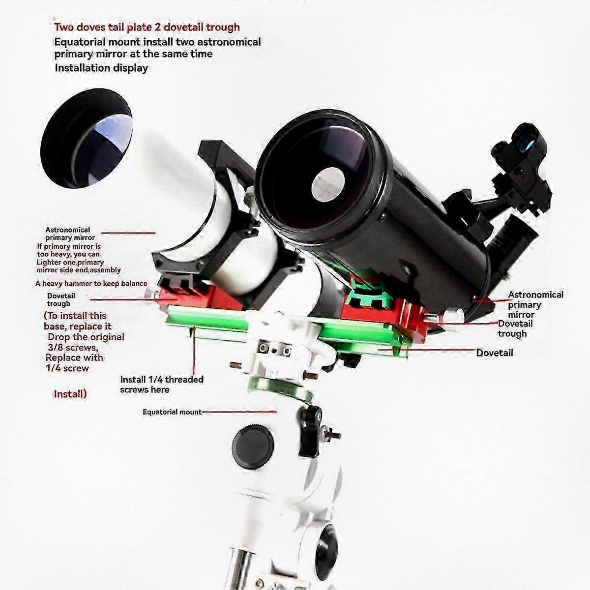 250mm Equatorial Telescope Dovetail Adapter Plate for Astronomical Telescopes - Green