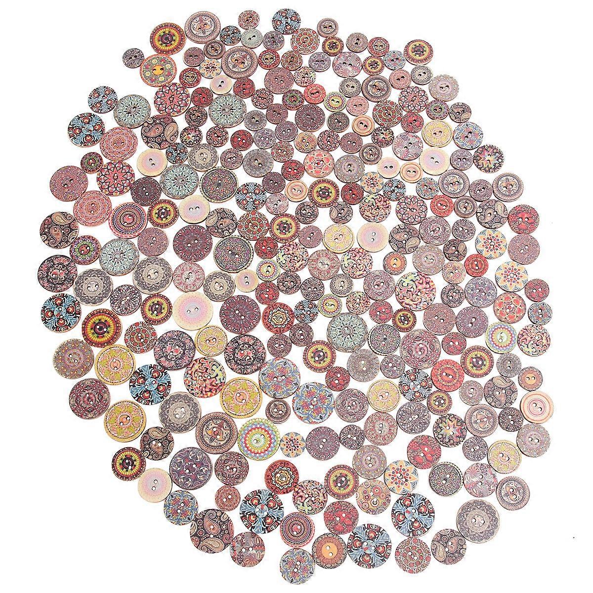 250pcs Round Wooden Buttons Vintage Fastener DIY Printing Round Snaps Mini Delicate Button for Clothes Bag Pants DIY Sewing (15mm + 20mm + 25mm)