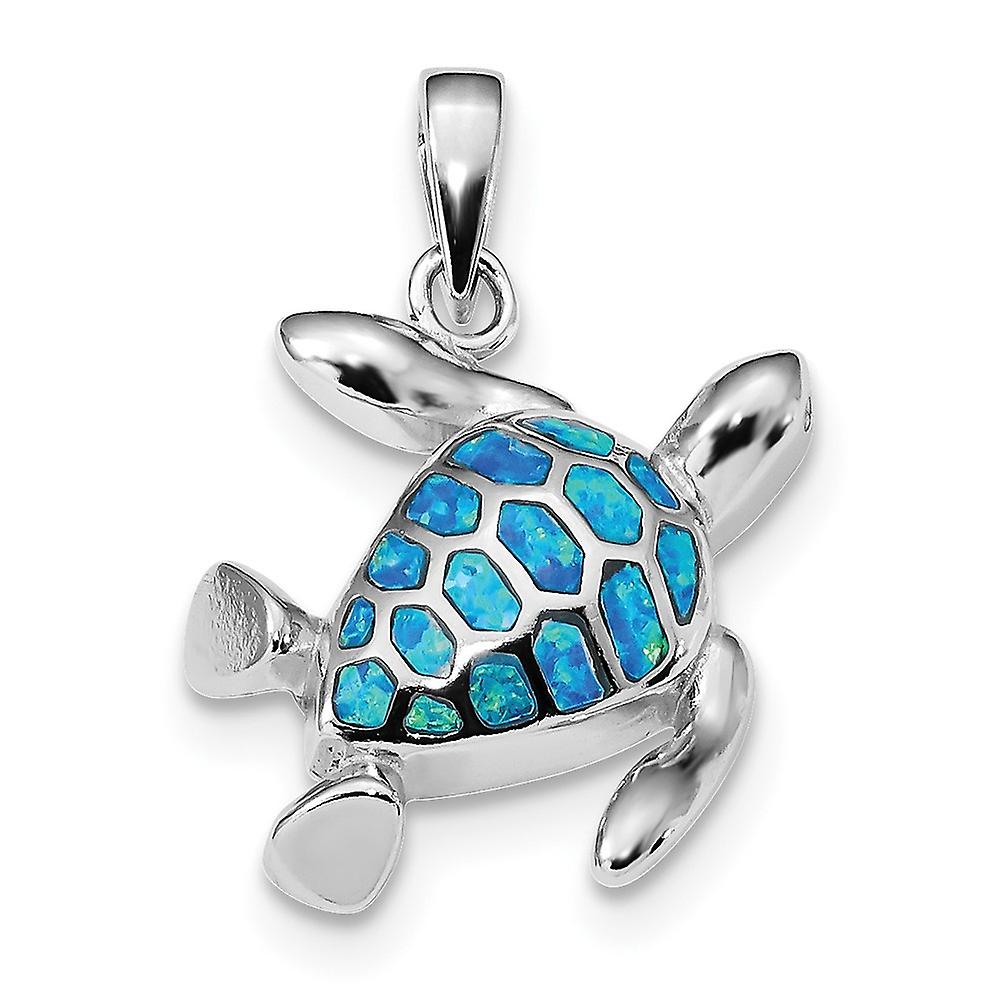 25.2mm 925 Sterling Silver Rhodium Plated Blue Inlay Simulated Opal Turtle Pendant Necklace-Pendant for Women