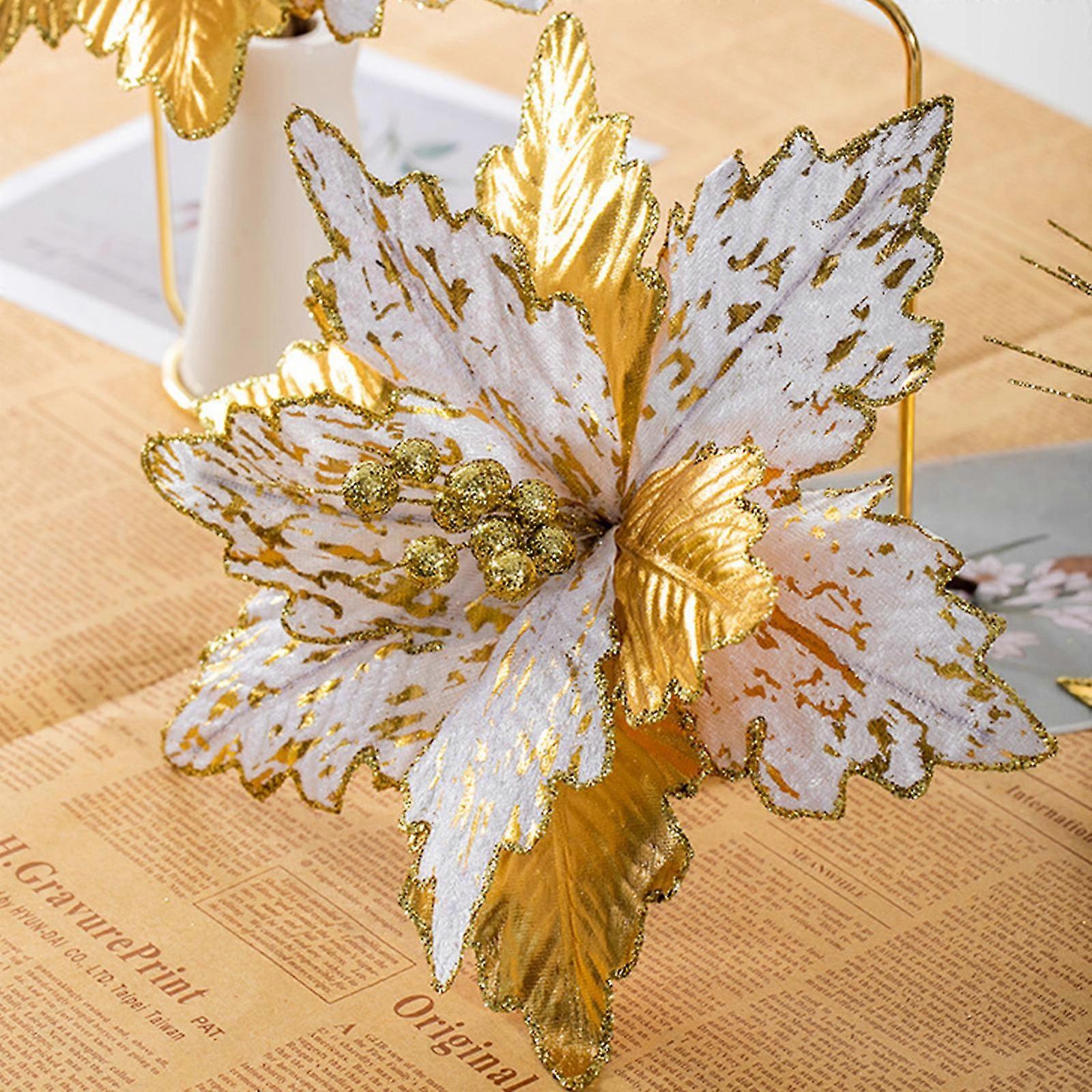 25cm Gold Christmas Flower Decoration With Extendable Stem And Foam Bristles