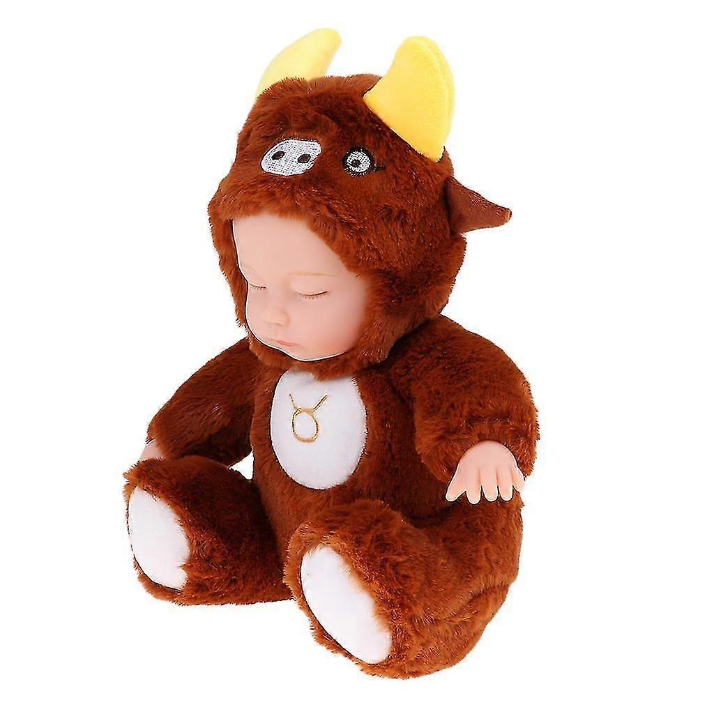 25cm Soft Plush Stuffed Baby Doll Reborn Constellation Doll Toy Brown Taurus