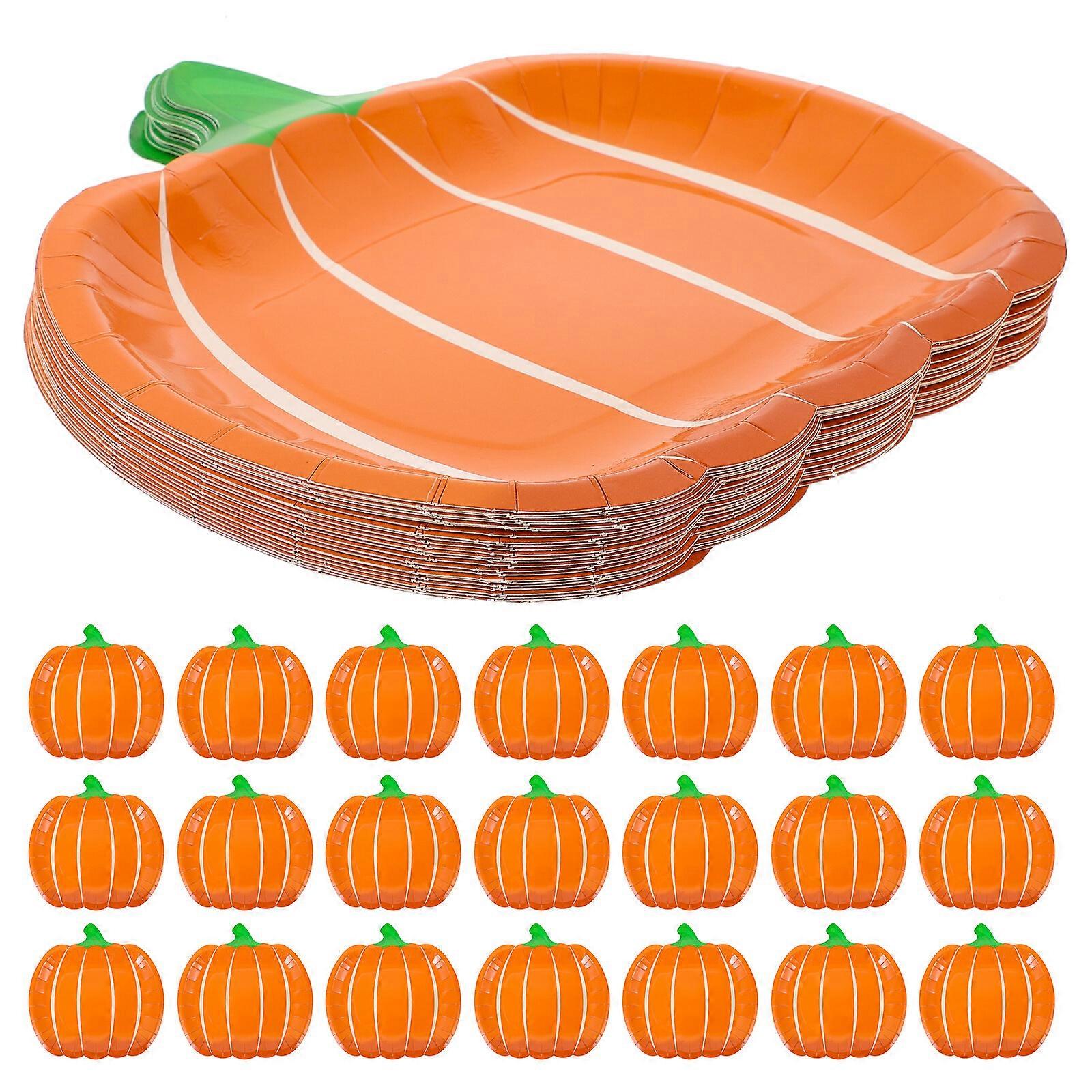 25pcs Halloween Plates Pumpkin Shaped Disposable Paper Tableware Cake Dessert Plates