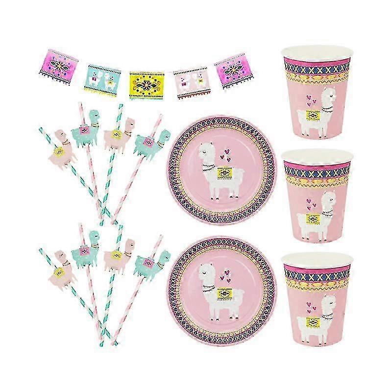 25pcs Disposable Cutlery Kit with Cartoon Alpaca Theme for Kids' Birthday Party Tableware Set