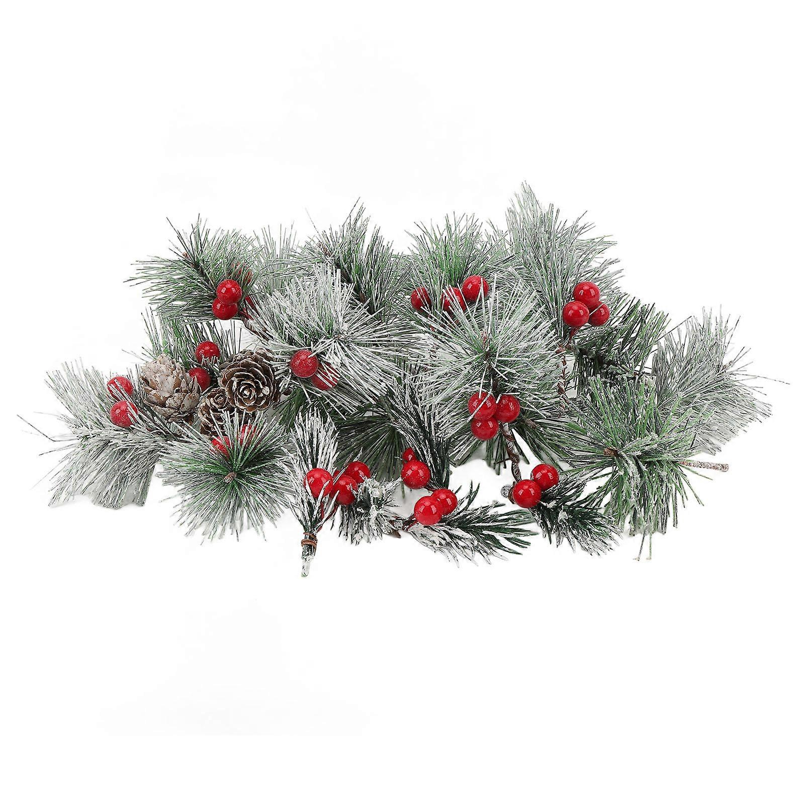 25PCS 5 Types Artificial Pine Picks with Red Berry Decorative Pine Needles for Decorating Xmas Tree Wreath Crafts