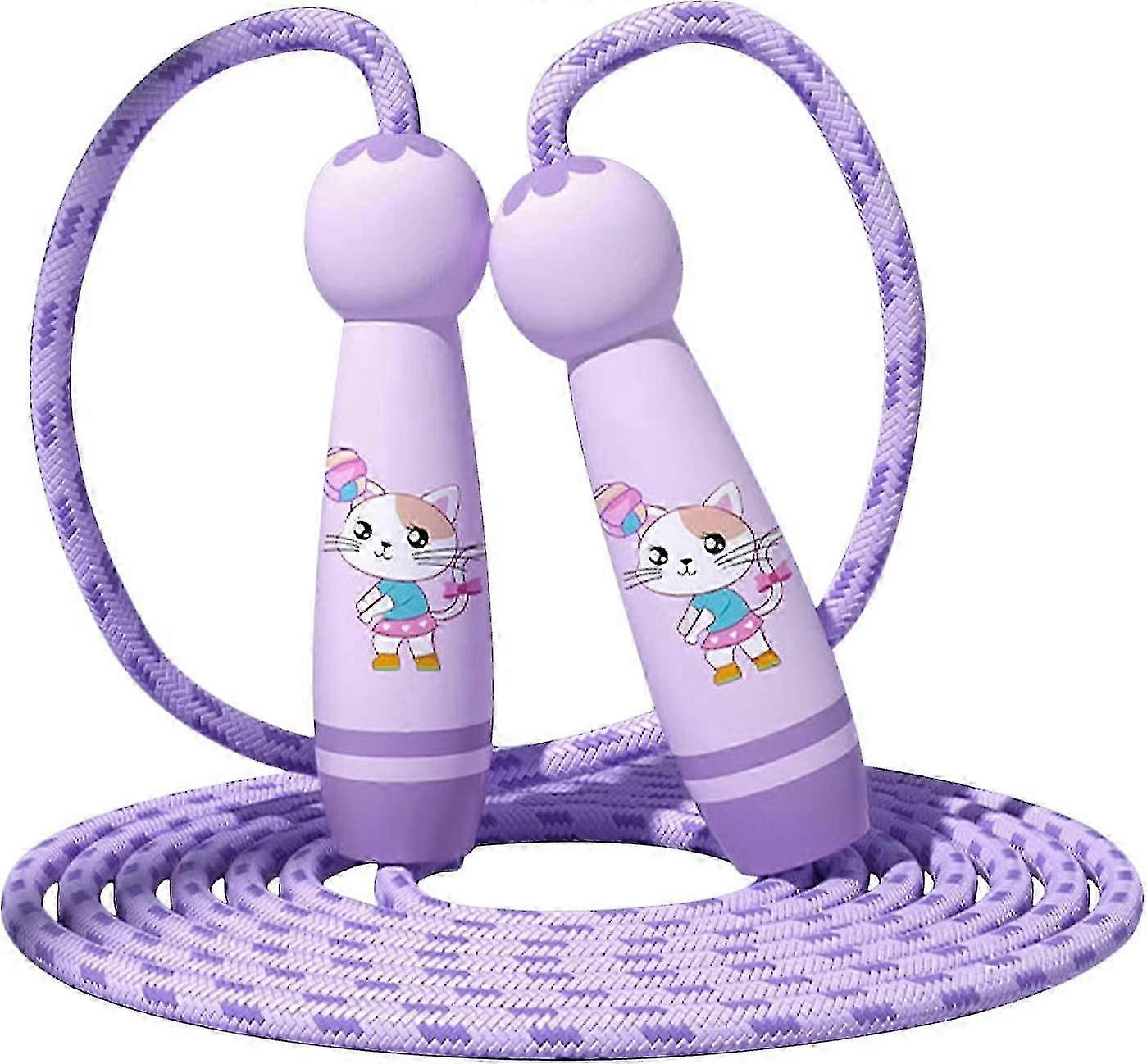 KIDS COTTON JUMP ROPE: This classic wooden handle jump rope is suitable for kids, indoor and outdoor activities, home training, gym, health promotion, cardio training, fitness training and more. Skipping rope is a toy and fitness equipment for children while helping them develop excellent motor skills and keep fit. PREMIUM DESIGN: Super nice cartoon stickers on the handle, perfect for kids 3and and adults. It can be adjusted to the desired length. At the end of the rope, there is a knot inside the handle. Slide the rope over the handle and tighten a new knot to shorten the rope to the desired length. Finally, cut off the excess rope length. HIGH QUALITY AND SAFETY: The colorless (non-toxic and odorless) wooden handle fits all hand types. The 11cm long handle has a smooth surface, making it easy for children to hold. Lightweight braided cotton rope moves easily and doesnt leave welt marks. EASY TO USE: This skipping rope is specially designed for young skippers. Provides healthy, active, screen-free time for all skill levels and improves overall health. Great indoor and outdoor fun for kids of all ages. IDEAL GIFT: This skipping rope is a fun toy to give to your kids as a gift. Birthday gifts for girls and boys, Christmas gifts for kids, etc.