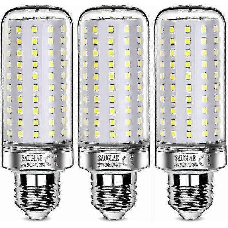 26W LED Bulbs, 200W Equivalent Incandescent Bulb, 3000Lm, 6000K Cool White, E27 Edison Screw Bulbs, 3 Pieces [Energy Class E]