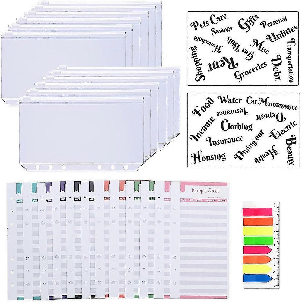 27 Pack A6 Pocket Binder Sets A6 Binder Zipper Pockets Expense Budget Sheets Cash Envelope Labels S