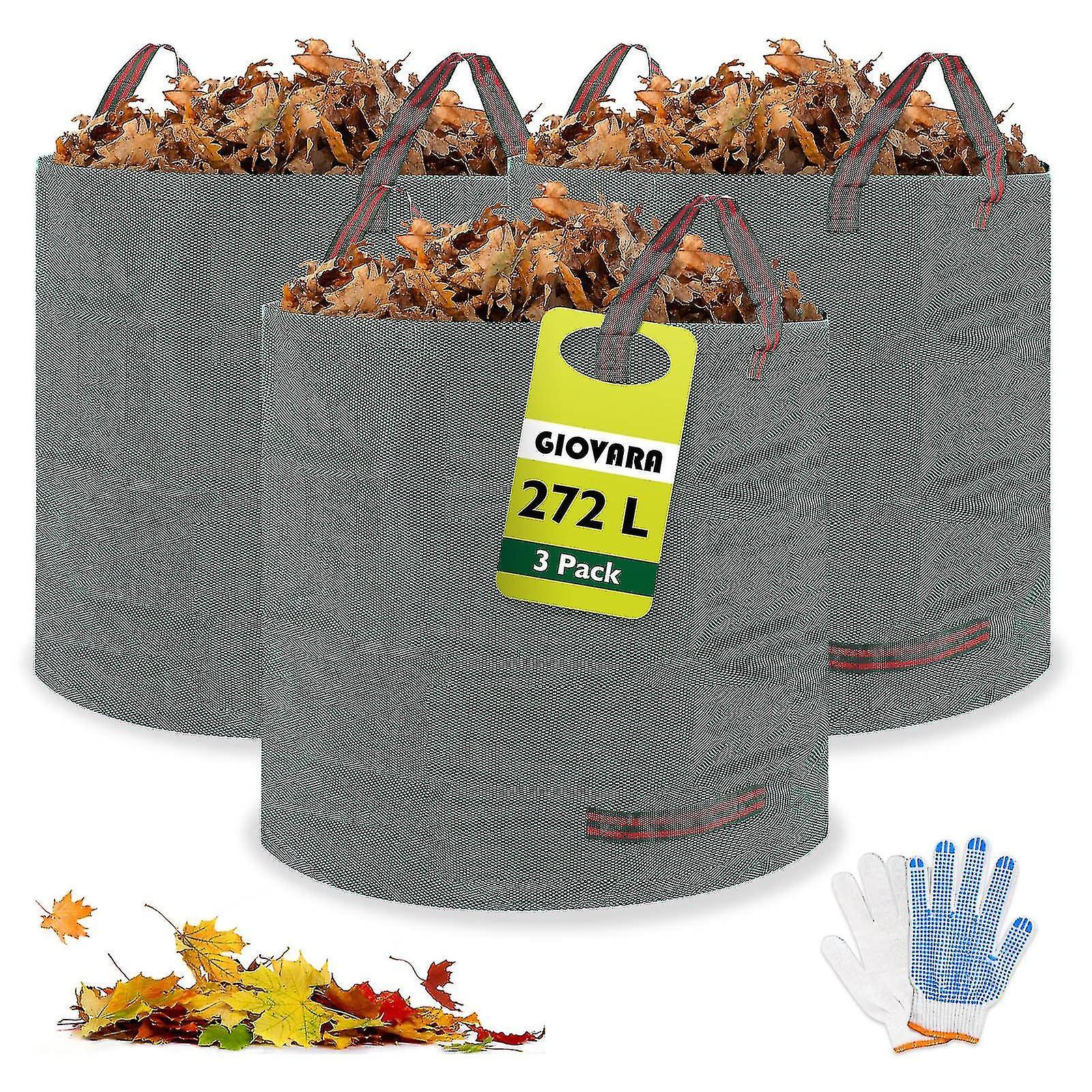 272l Garden Waste Bags 3 Pack, Waterproof Heavy Duty Large Refuse Sacks With Handles, Foldable And Reusable (3)