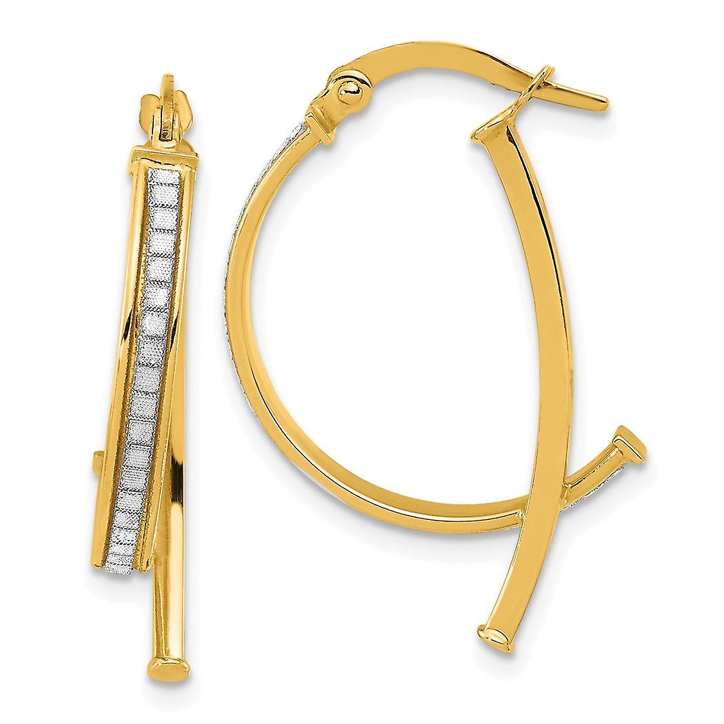 2.75mm 14k Solid Yellow Gold Polished Glitter Infused Hoop Earrings 29x16mm Wide-Hoop Earring for Women