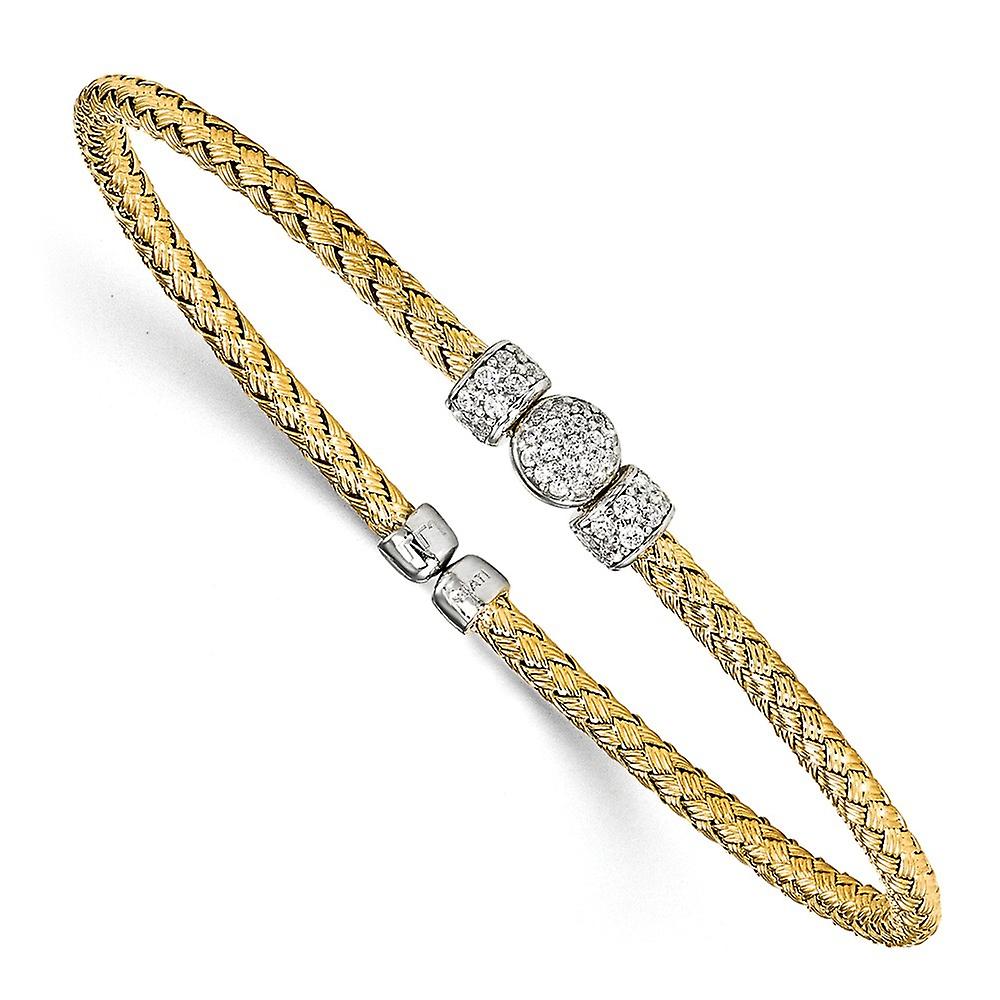 2.75mm 925 Sterling Silver Polished Flexible Gold tone Cubic Zirconia Woven Cuff Stackable Bangle-Cuff Bracelet for Wome