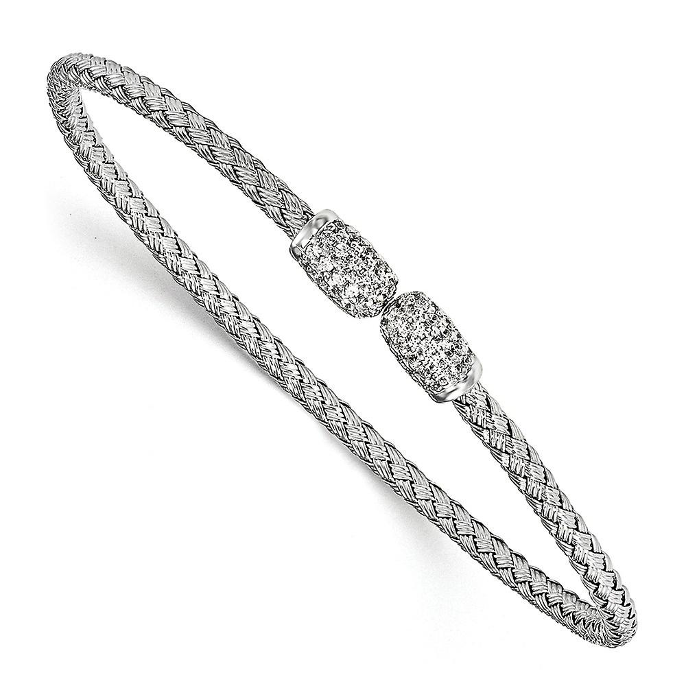 2.75mm 925 Sterling Silver Polished Rhodium Plated Cubic Zirconia Woven Cuff Stackable Bangle-Cuff Bracelet for Women