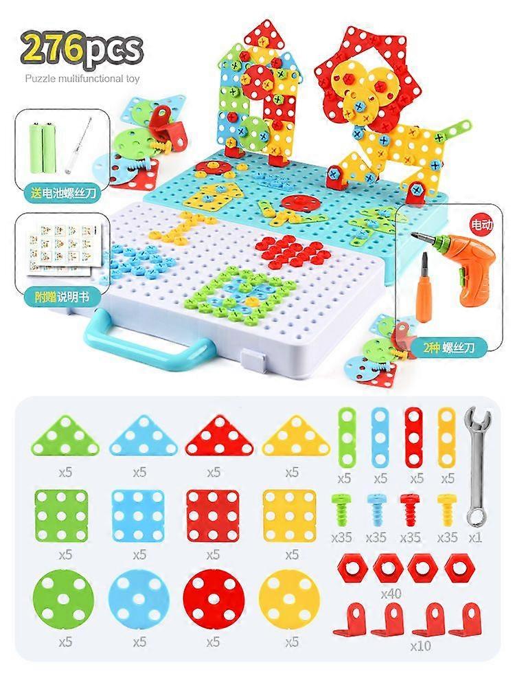 276 Pcs STEM Toys Kids Drill 2 in 1 Educational Set with Electric Drill Puzzle and Button Art Toy for Boys and Girls Ages 3 4 5 6 7 8
