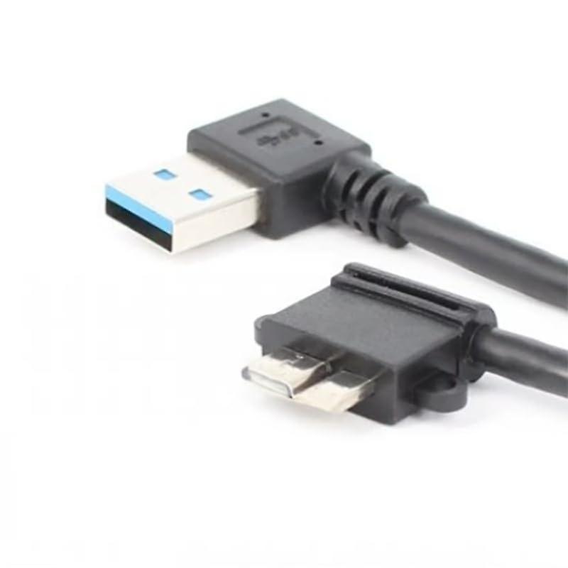 This cable is a compact, purposebuilt solution when you need a short, rightangle USB 3.0 connection for MicroB devices with a righthand exit direction.