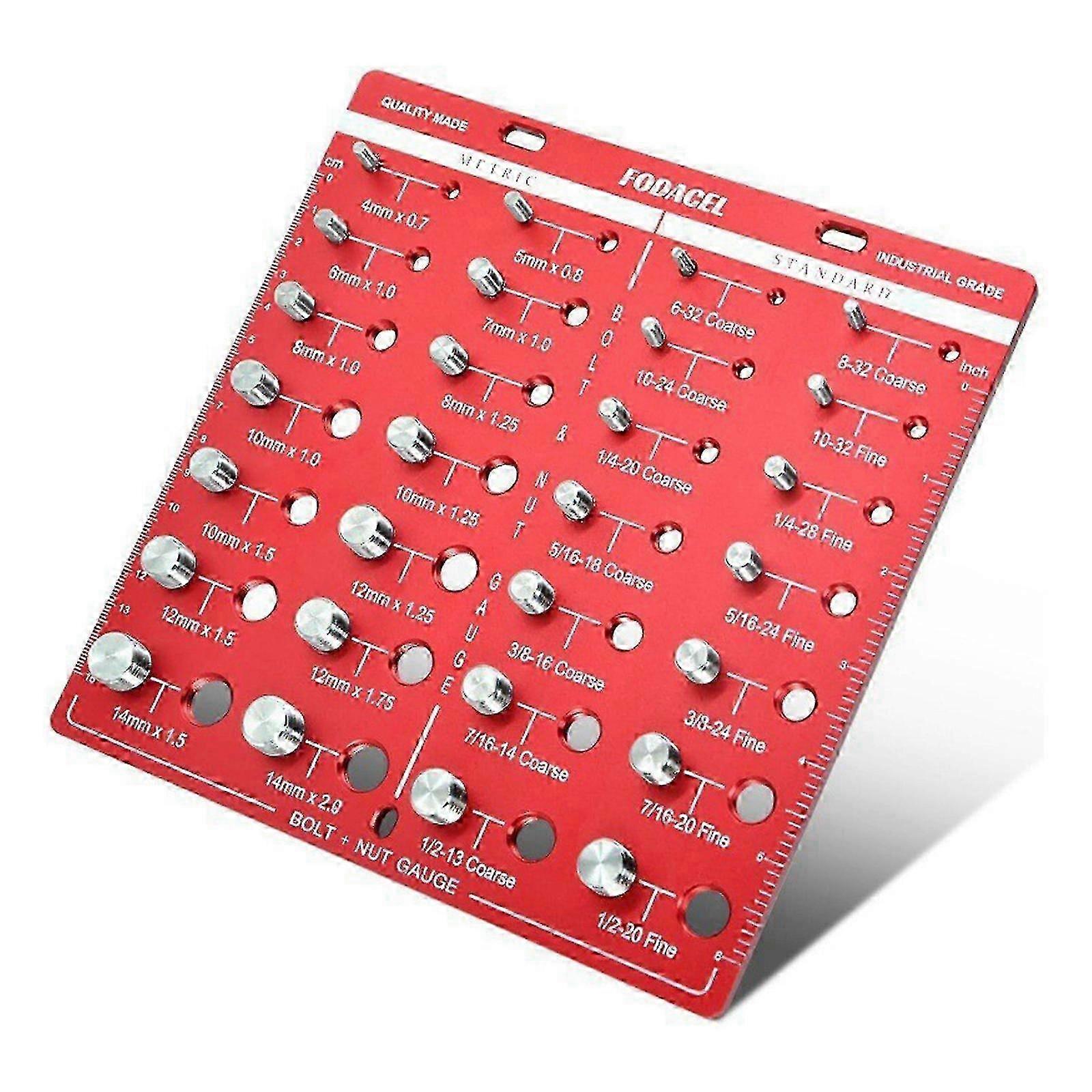28-Size Nut & Bolt Thread Checker, Inch & Metric, Carbon Steel, Dual Scale Design, Red