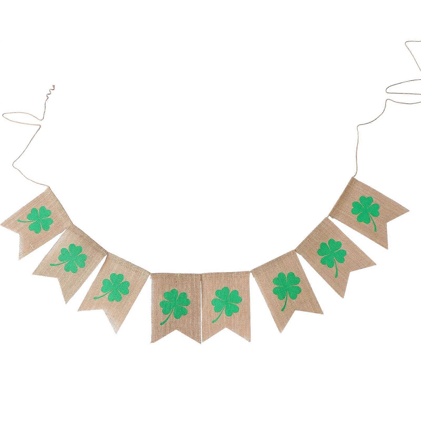 2.8 Meters Shamrock Burlap Banners Green Clover Bunting Garland Swallow-tailed Flags For St. Patrick's Day Decorations St Paddy's Decor