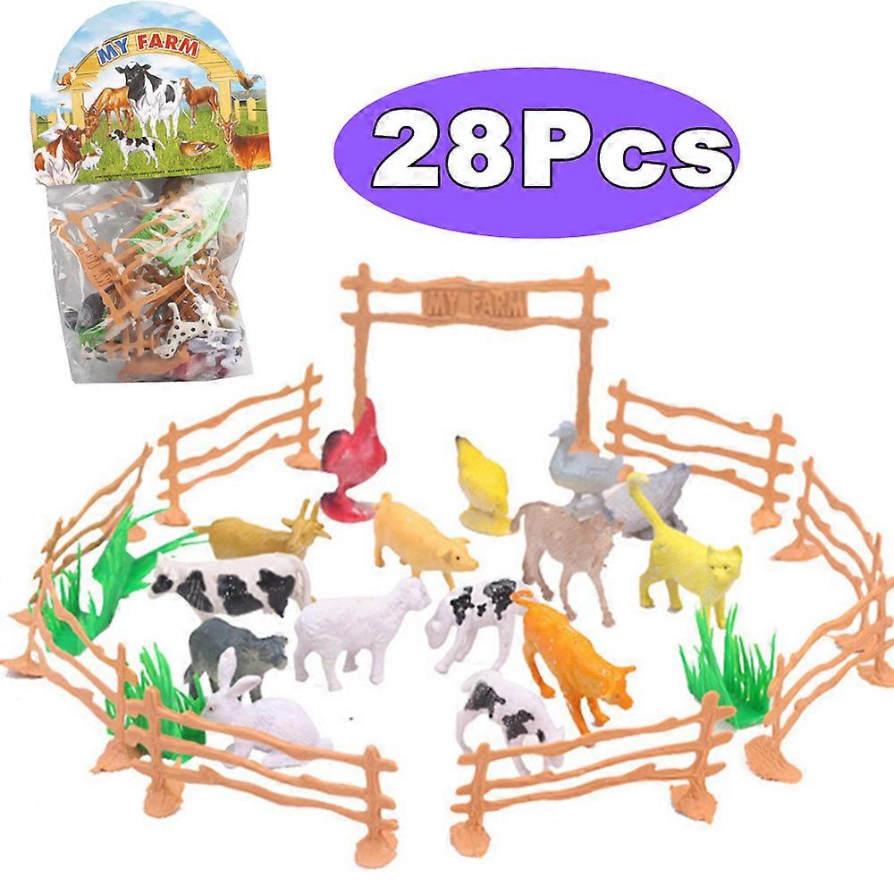 28Pcs Plastic Farm Animals Set Cat Dog Horse Pig Sheep Cow Duck Model Children Toys Eduactional Toy Kids Boys GirlsBirthday Gift
