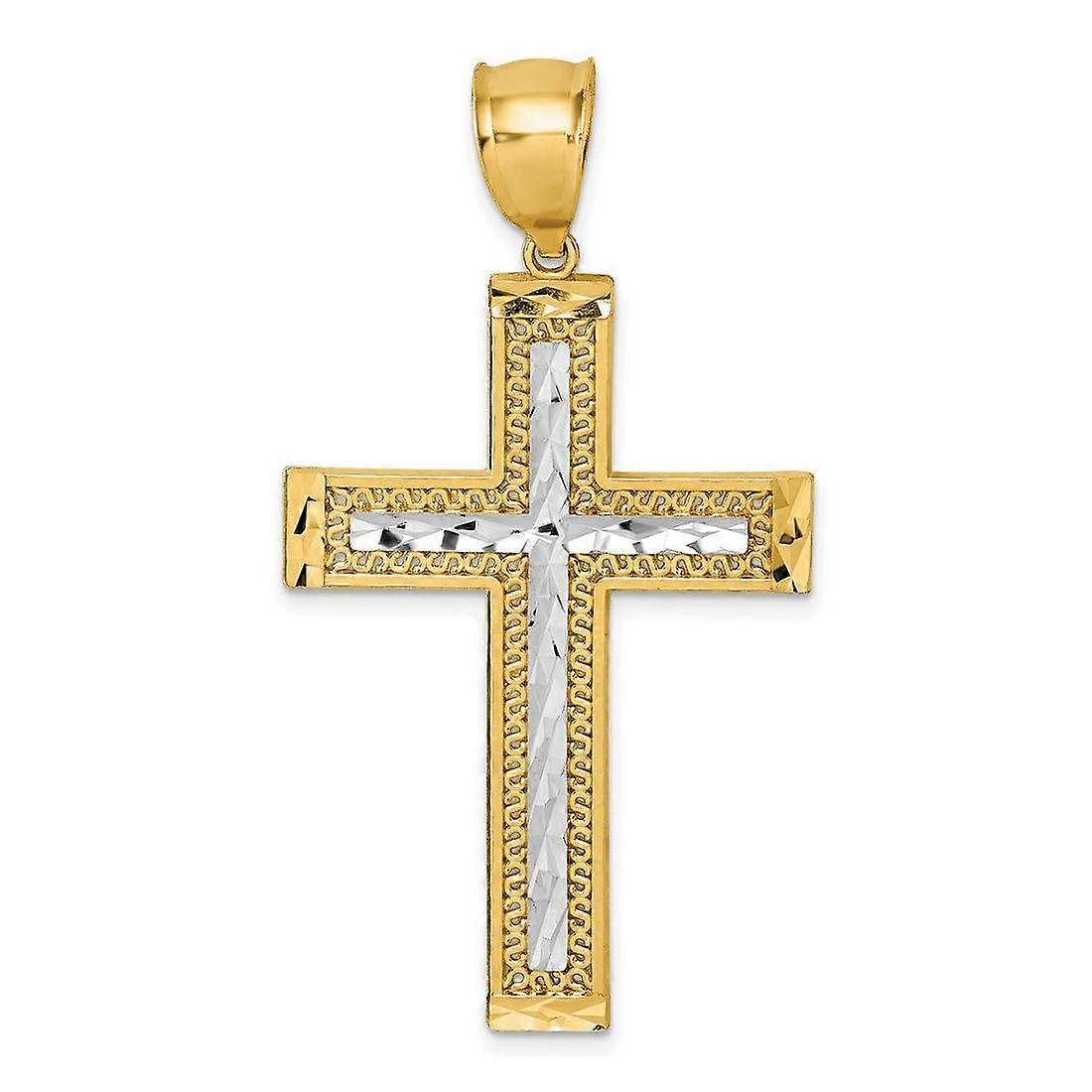 28.6mm 14k Polished With Rhodium Sparkle Cut Textured Fancy Religious Faith Cross Pendant Necklace-Pendant for Women