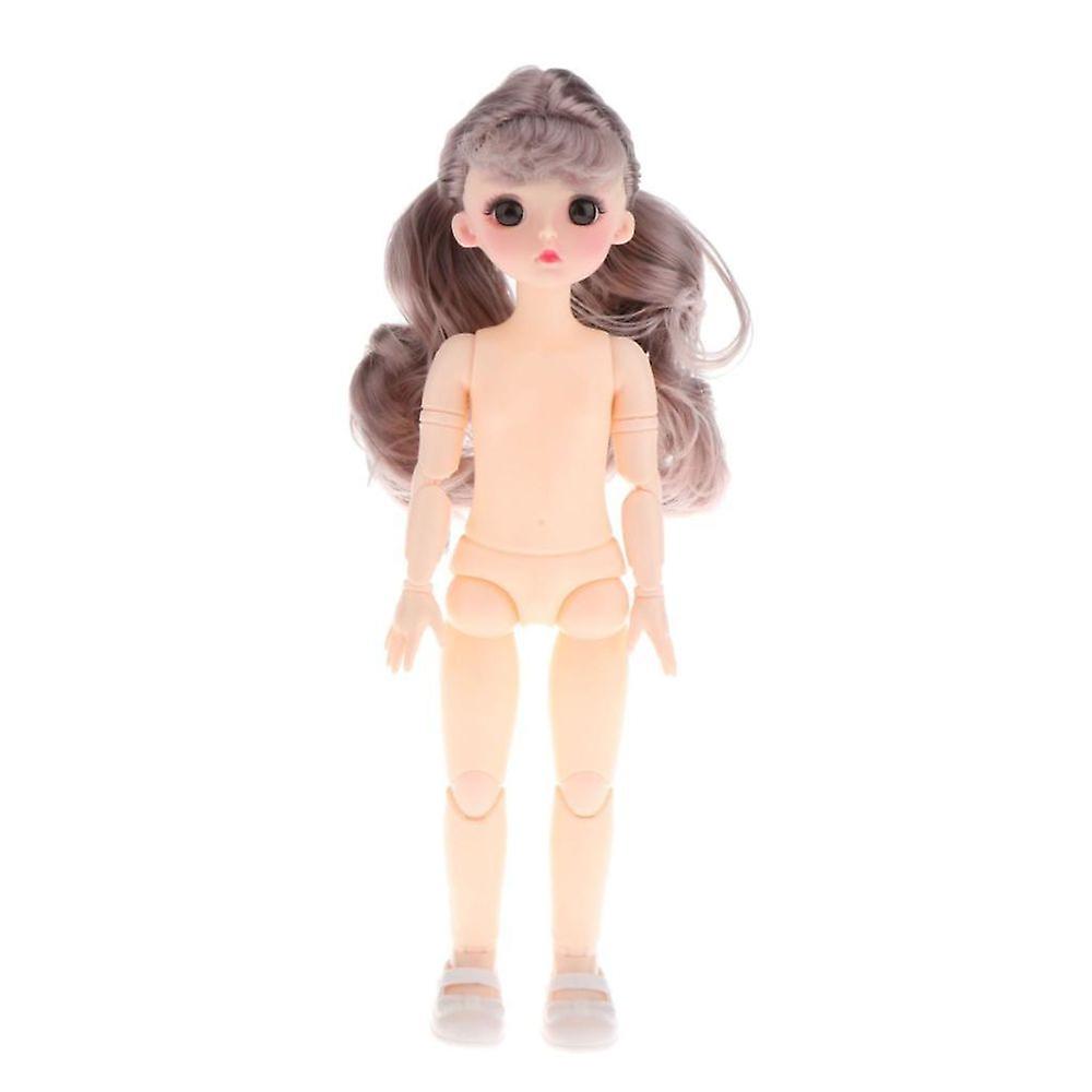 28cm Ball Jointed Girl Doll Body Diy Blue Fringe Curly