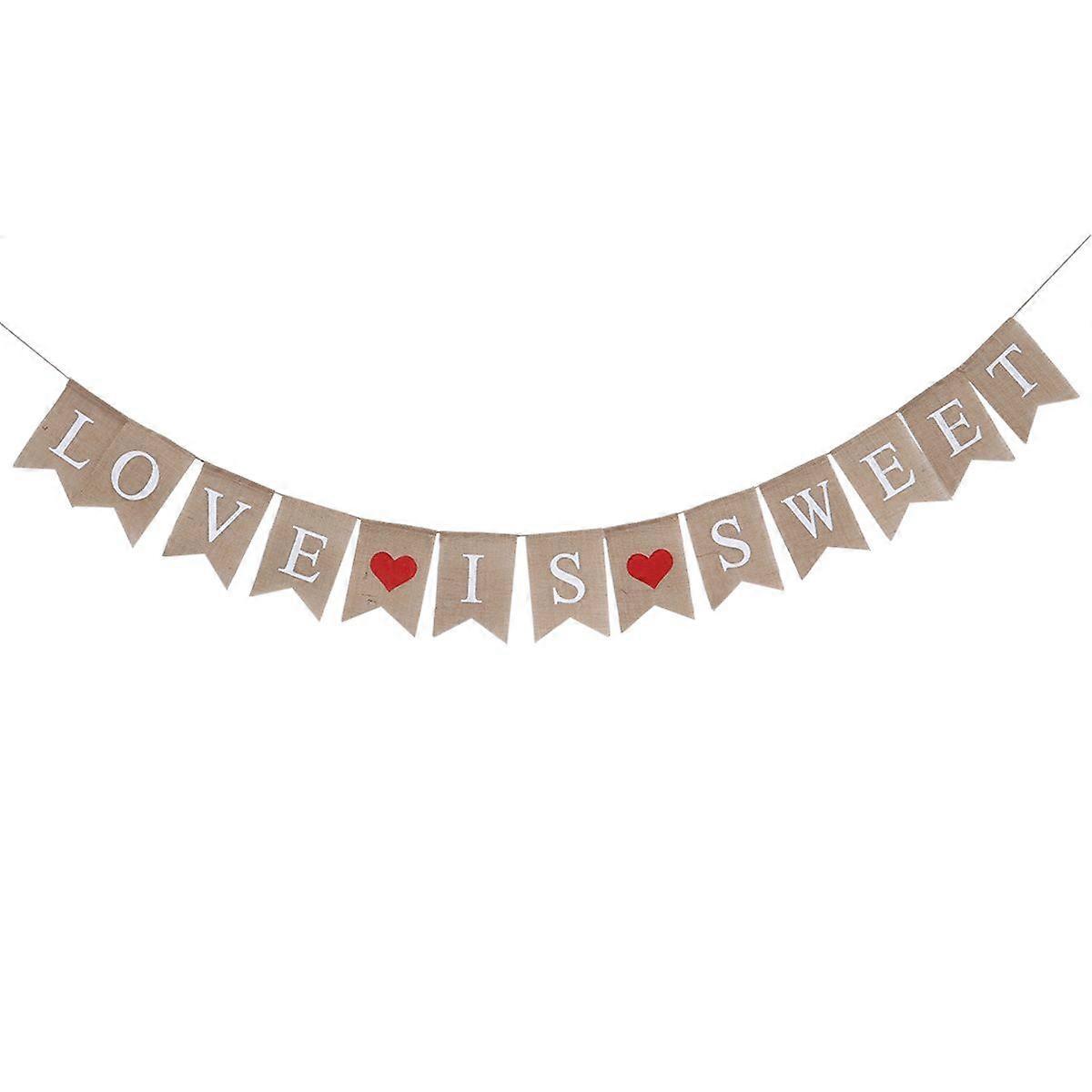 2.8M LOVE IS SWEET Bunting Banner Burlap Swallowtail Flags Banner Hanging Garland for Wedding Party