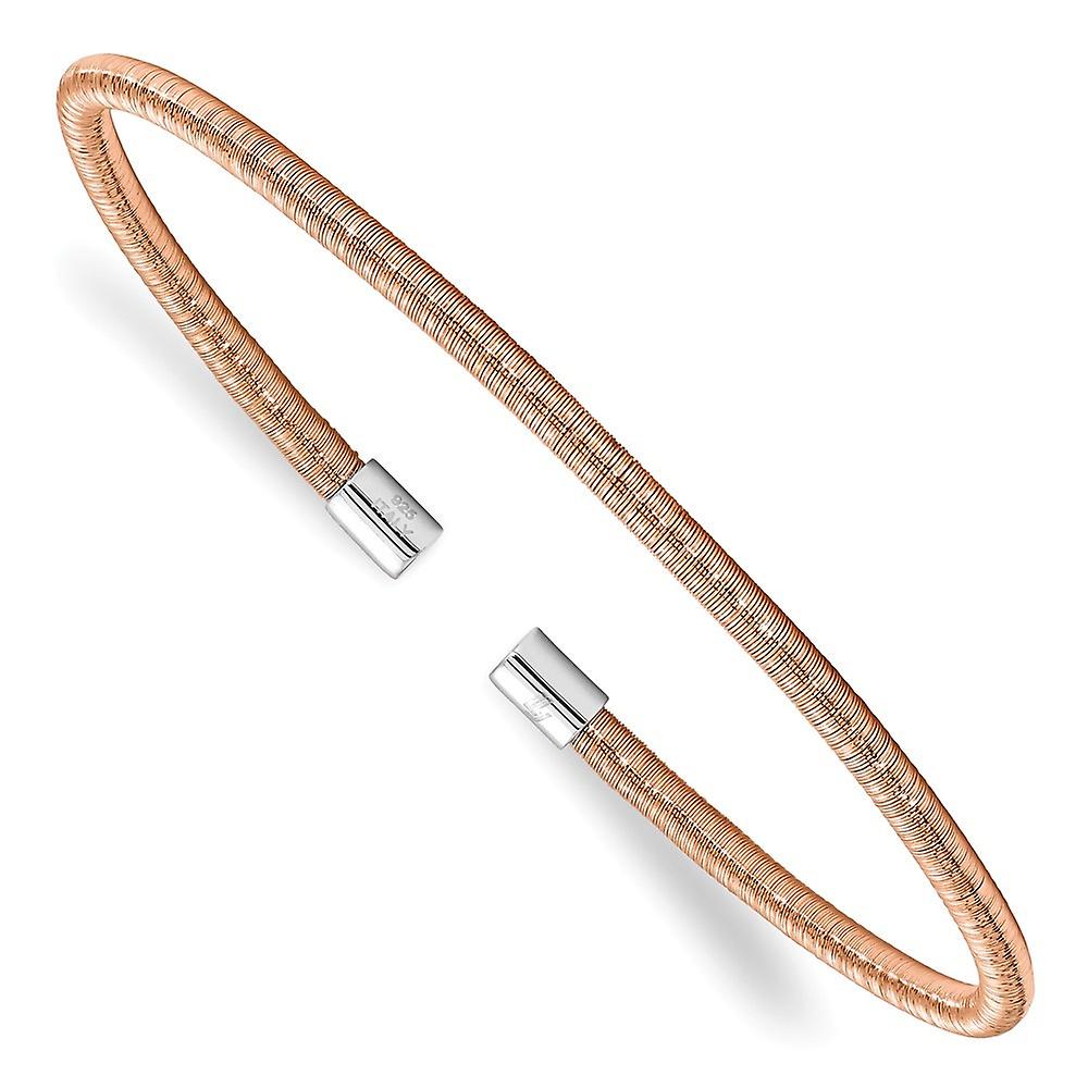 2.8mm 925 Sterling Silver Rose Rhodium Textured Cuff Stackable Bangle Bracelet-Cuff-Bracelet for Women