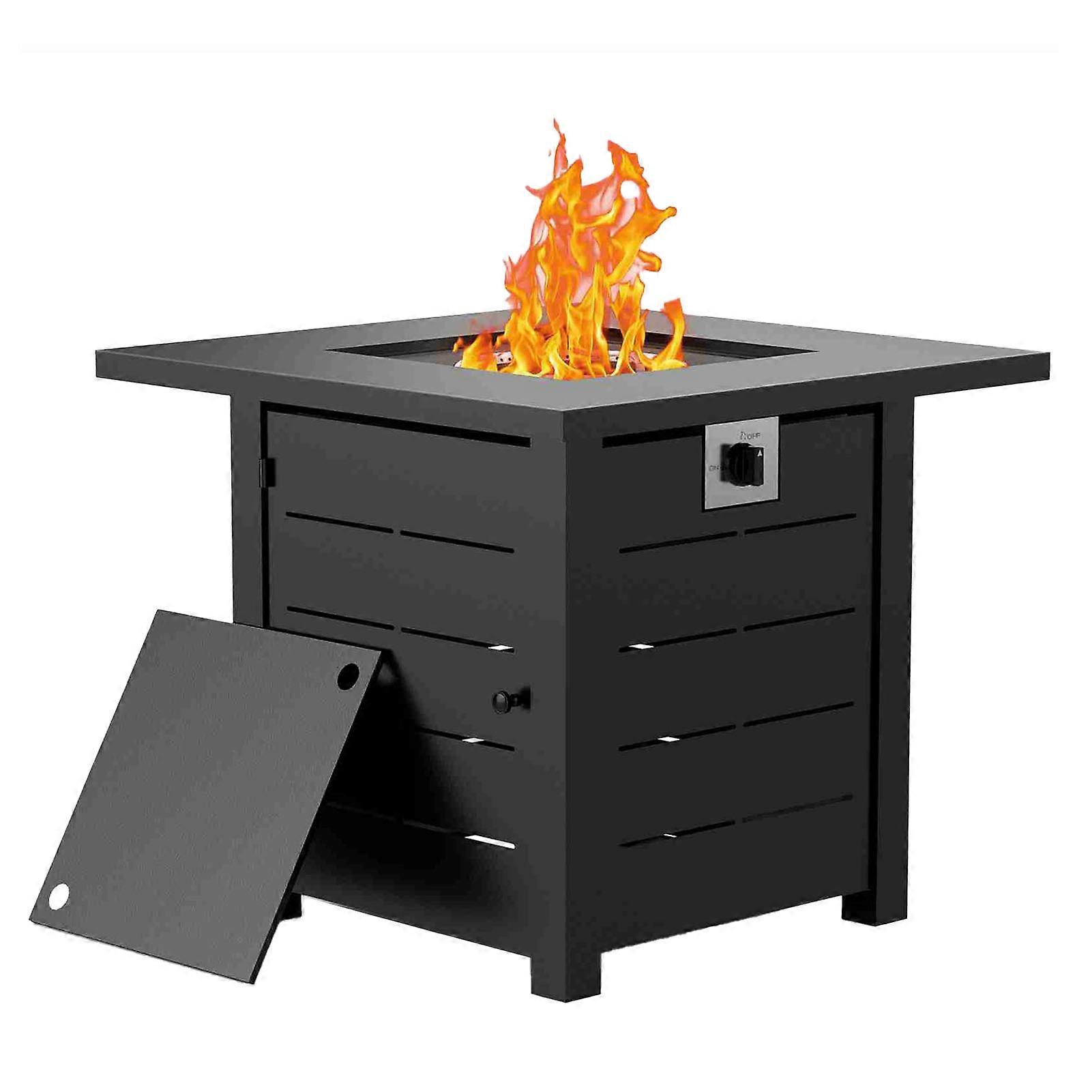 28x28x25 Inch Black Iron Fire Pit Table with Safety Lid