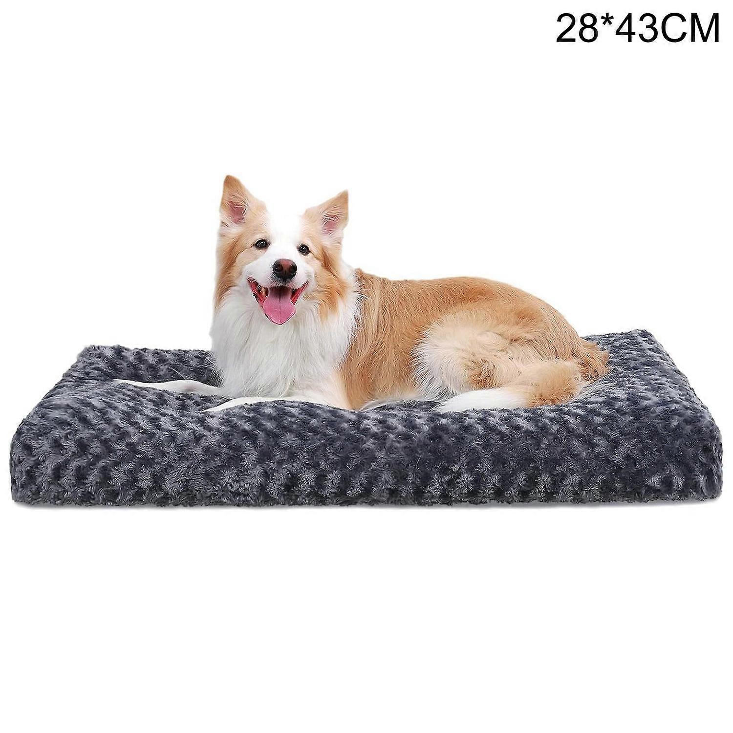 28x43cm Warm Velvet Dog Bed Mattress Fluffy Comfy Kennel Pad Anti-Slip Pet Sleeping Mat-Dark Grey