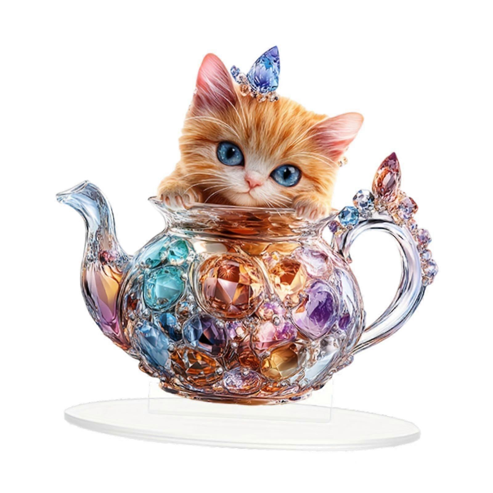 2D Cat Acrylic Sign Waterproof Desktop Ornament for Desk Bedroom Living Room