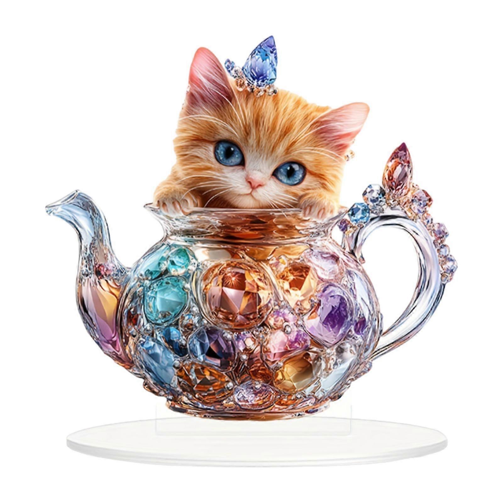 2D Cat Acrylic Sign with Base Animal Decorative Plaque for Office Shelf Desk