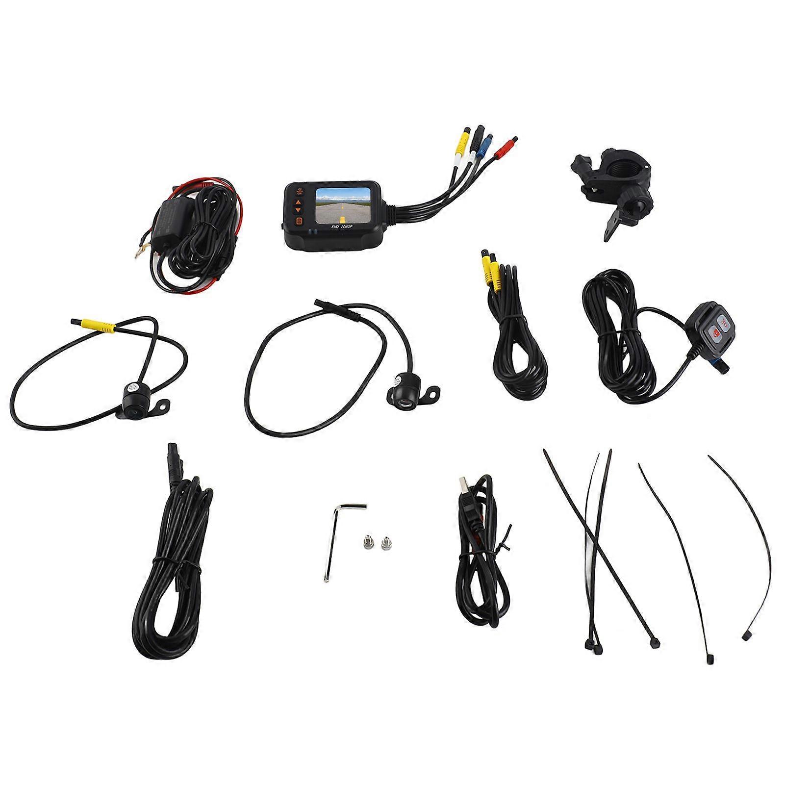 Feature:1. Rainproof Camera: This motorcycle driving recorder (host DVR IP65 rainproof, camera IP67 rainproof) is rainproof. Does not support WiFi and GPS, does not support GPS signal tracking and connection to mobile APP, only supports DVR host playback, or remove the memory card to connect to the computer to play video.2. HD Recording: The motorcycle camera uses AIT chip and two HD lenses at the front and rear. Front 1080P, rear 720P, using lossless AHD dual signal transmission, super anti interference, avoid vibration and flicker.3. Intelligent Parking Protector: After installing the driving recorder wiring kit, it can be turned on and off when the motorcycle is turned on/off. When the parking mode is turned on, it will automatically start recording when the motorcycle collides while parking.4. Loop Recording: Built in sensor, which automatically locks the recorded video file in an emergency (severe vibration, car accident collision). The motorcycle driving recorder supports up to 32GB memory card (excluded). When the capacity of the memory card runs out, it will automatically overwrite the old files in order.5. Rainproof Wire Controller: Motorcycle camera controller adopts humanized design, builtin recording status indicator and microphone, you can install the wire controller on the motorcycle handle, start/stop recording via the control button, and lock the video file.Specification:.Item Type: Motorcycle driving recorderShell Material: ABSColor: BlackApplicable Model: All motorcyclesFront Camera Angle: 120Rear Camera Angle: 90Display Screen: 2.0inRainproof Grade: Host IP65 rainproof, lens and cable IP67 rainproofVideo Format: AVILoop Recording: Support, 1 minute, 3 minutes, 5 minutesFrame Rate: 30f/sRecording: Recording by wire controller, support opening and closingPlayback: Support video playback, view picturesDynamic Induction: SupportParking Monitoring: SupportIntermittent Recording: 0msMemory: Support memory card 4GB-32GBDate Tag: Display on the video screen, support settingsStarting Time: 2SPower Supply: 12-24 to 5VLanguage Setting: Simplified/Traditional/English/Russian/Japanese/Thai/KoreanScreen Guard: SupportWorking Temperature (): (-20-70)Automatic Shutdown: SupportButton Sound: SupportBattery Type: High temperature resistant polymer lithium battery 150mAH (included)Wire Control Function: Support camera, lock video, recording functionFixing Method: Support handle fixingPackage List:1 x Host1 x Power Cord1 x Step-Down Line1 x USB Cable1 x Button Switch Line1 x Camera Connection Line2 x Camera1 x Bracket2 x Adhesive Sticker6 x Screw1 x Hex Wrench1 x ManualNote: